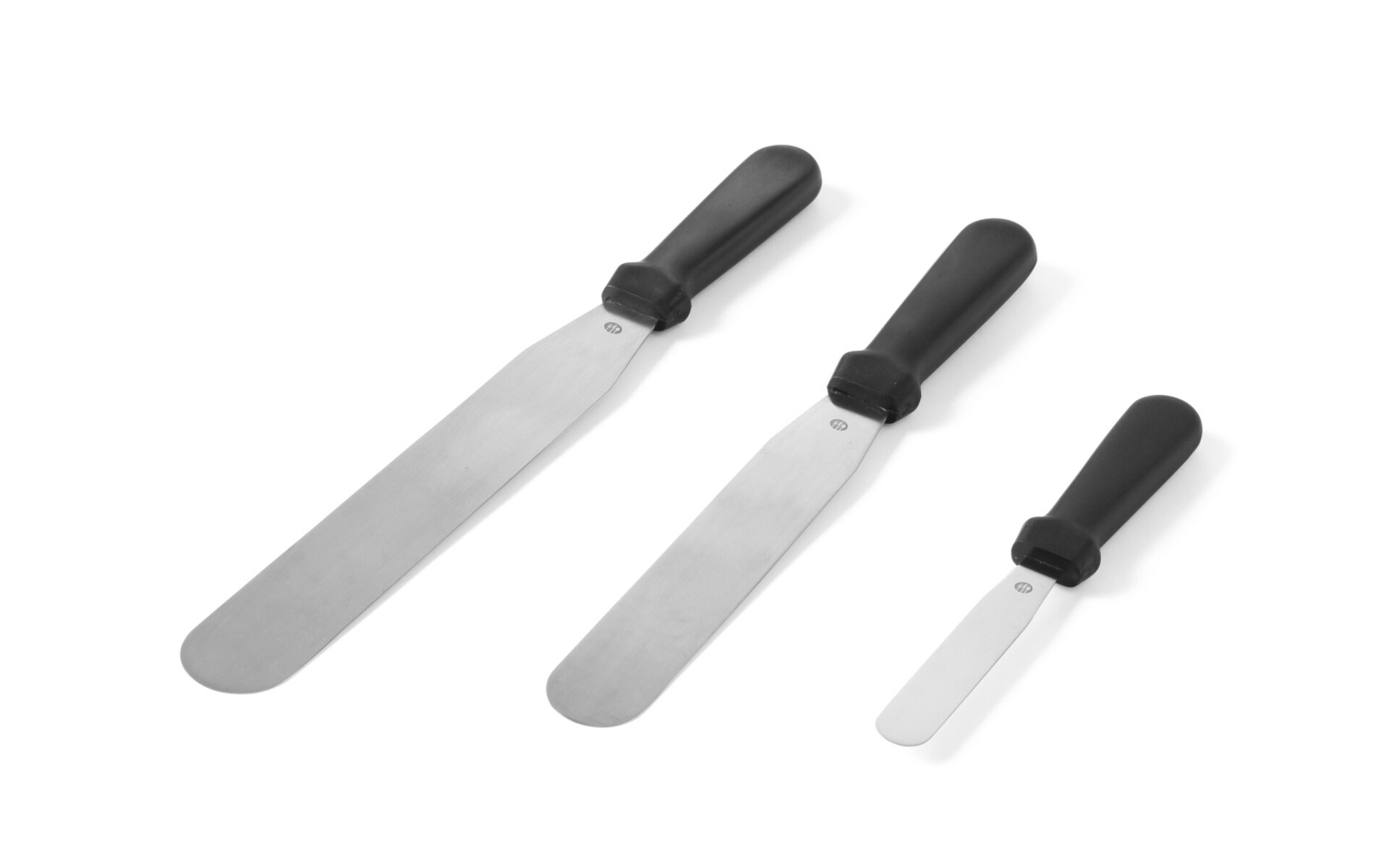 Set van 3 stuks : lemmet lengte 203 mm 34 x 325 mm , lemmet lengte 110 mm 17 x 215 mm en lemmet lengte 250 mm 390 x 375 mm Glad flexibel roestvrijstalen blad handvat PP