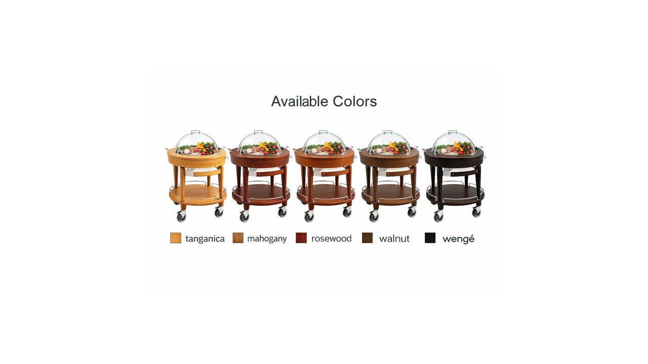 De PARIS trolley is verkrijgbaar in 5 elegante kleuren: tanganica, mahonie, rozenhout, walnoot en wengé, waardoor hij perfect past bij verschillende interieurstijlen.