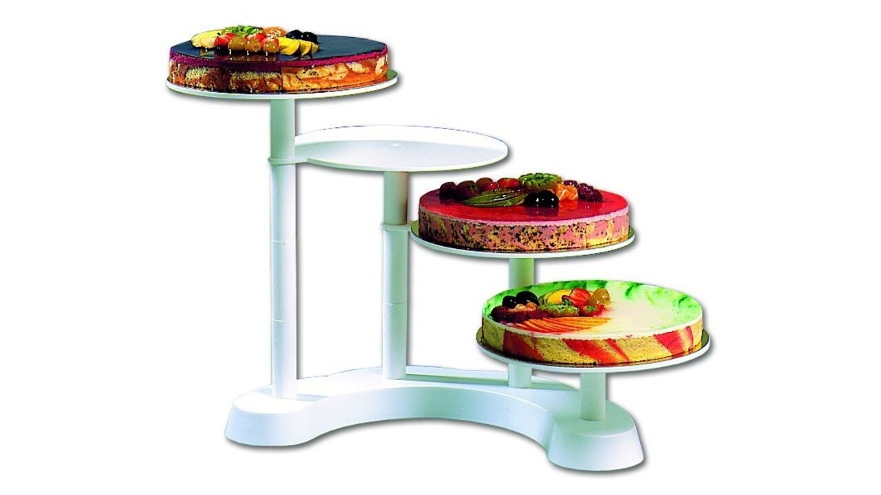 Deze taartdisplay met 4 modulaire niveaus is ideaal voor het decoratie van etalages, het presenteren van uw bereidingen of het serveren op recepties.