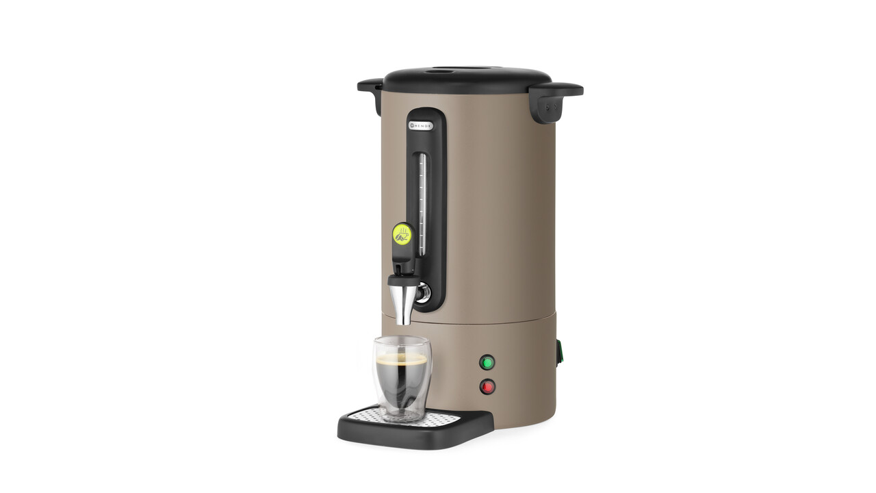 De HENDI Percolator – design van Bronwasser is de perfecte combinatie van elegantie en functionaliteit. Deze roestvast stalen percolator heeft een non–drip kraan, een glazen waterniveau-indicator, een magnetische lekbak en automatische warmhoudmodus, waardoor het een essentiële aanvulling is op elk modern buffet.