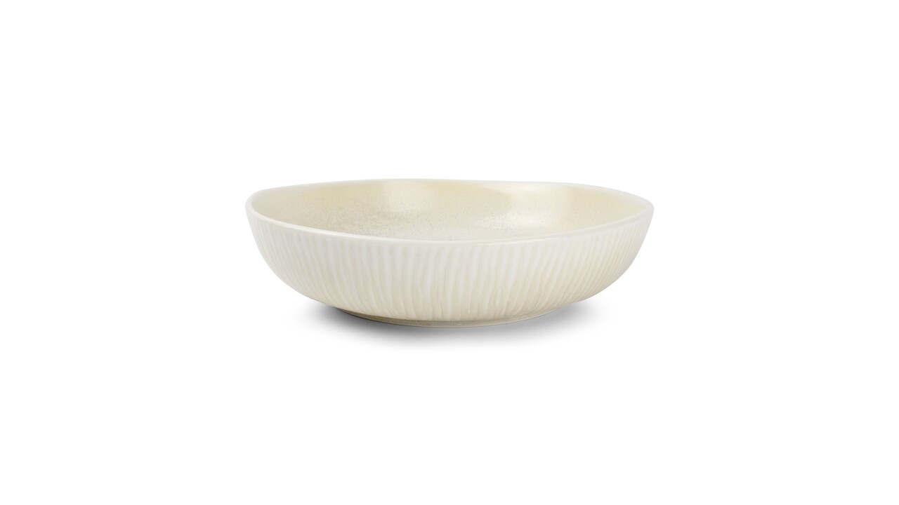 Een glimp van verloren tijden. Arco weerspiegelt de kracht van oude fossielen, aangezien de subtiele geribbelde vorm van deze serie de tijdloosheid van majestueuze ammonieten belichaamt. Arco combineert een matte, reactieve geglazuurde afwerking samen met een licht verhoogde onregelmatige rand voor een unieke touch. Bovendien geven deze reactieve glazuur en de robuuste maar elegante organische vormen een onvergelijkbare authenticiteit aan uw eettafel. Het zachte kleurpatroon is enorm veelzijdig uniek voor fine dine !