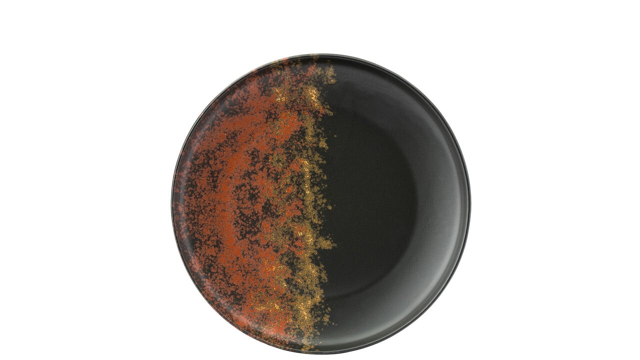 Oxy is een collectie met oosterse invloeden. Elk stuk is gebaseerd op een donkere satijnen glazuurlaag , verfraaid met handgedecoreerde, vurige tinten die een dramatisch effect creëren. Vaatwasmachinebestendig, geschikt voor professioneel gebruik.