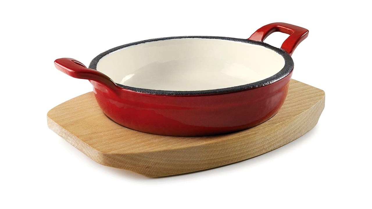 Geëmailleerde gietijzeren braadpan van binnen en van buiten.