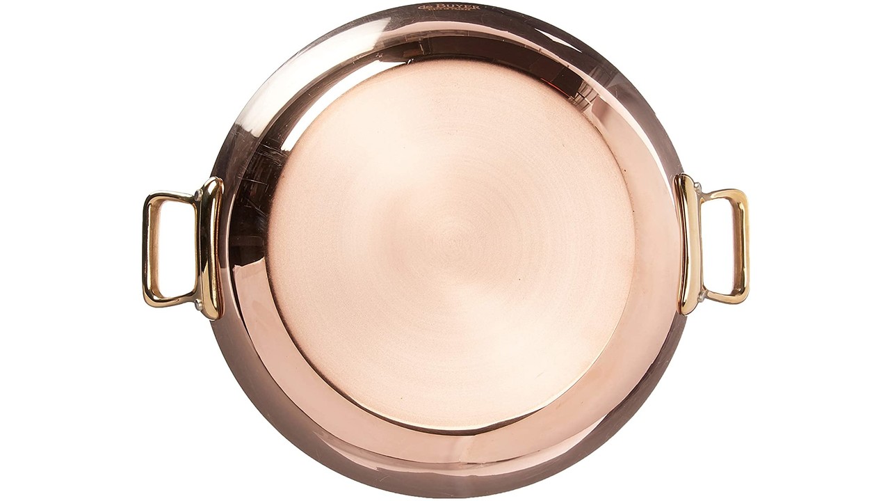 Deze kleine INOCUIVRE schotel combineert de elegantie en warmtegeleiding van koper met een mooi roestvrijstalen interieur. De puur koperen lagen zorgen voor een snelle warmtegeleiding en reactievermogen, terwijl het roestvrij staal uw voedsel beschermt tegen de elementen van het koper.