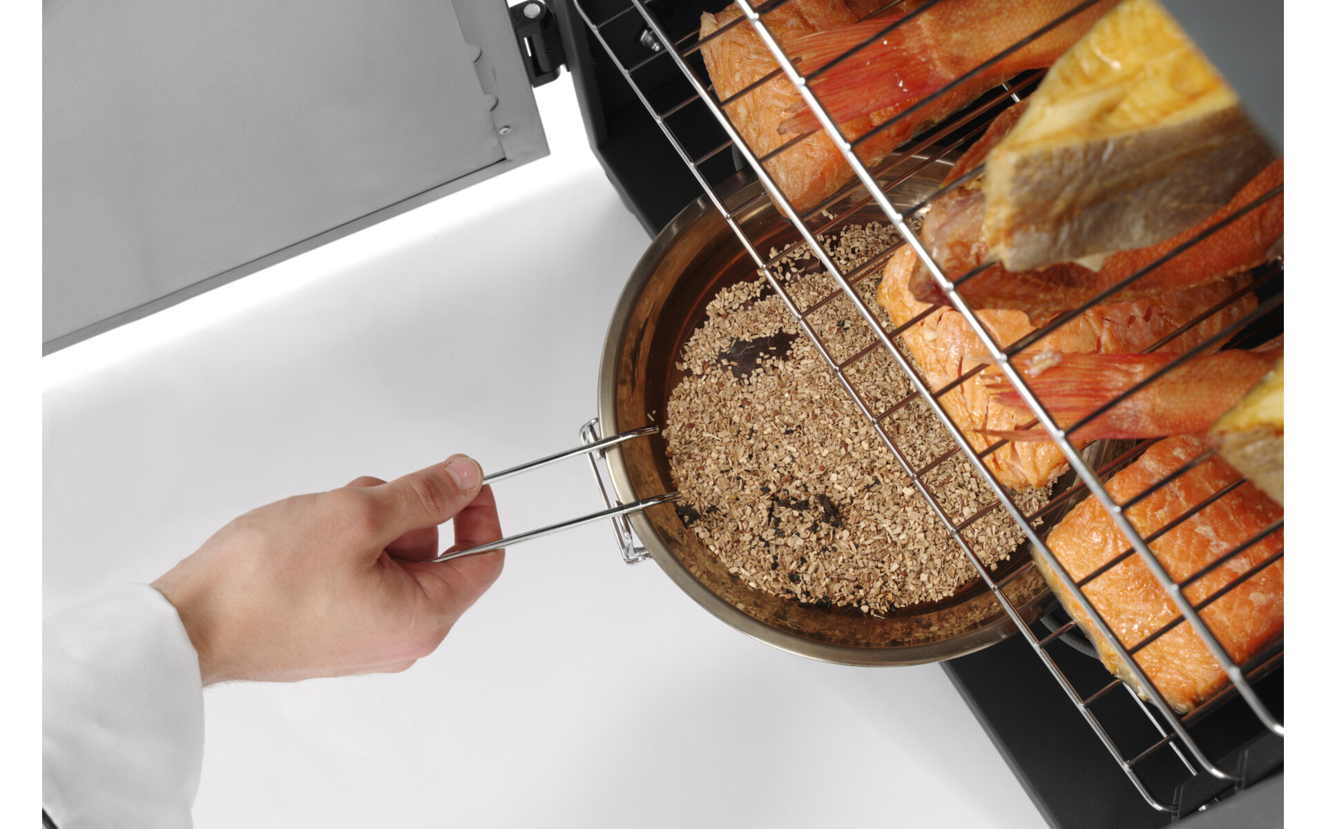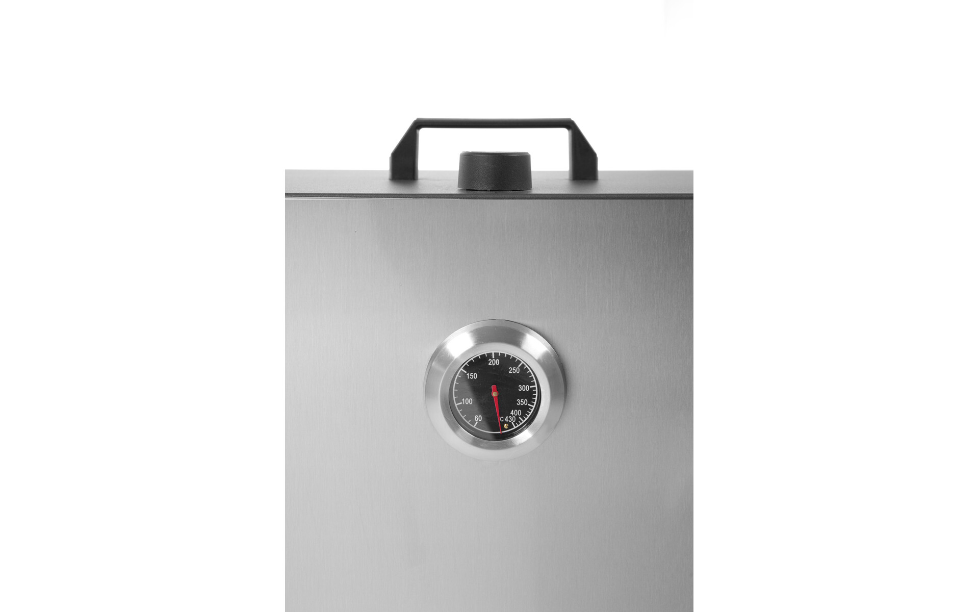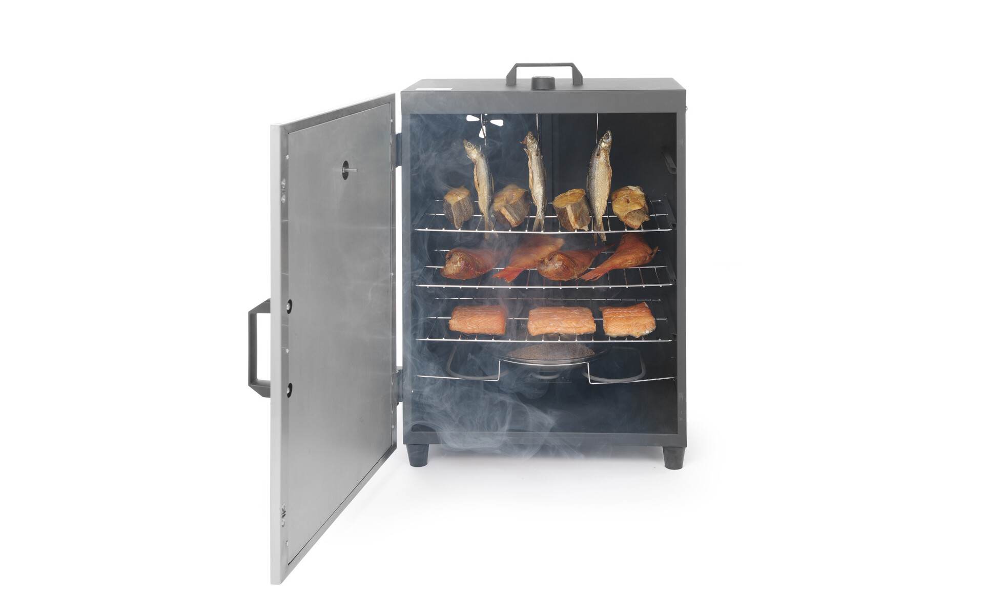 De rookoven is ideaal voor het roken en bereiden van vis, vlees, ham en groenten. Gemaakt van roestvast staal met magnetisch sluitende dubbel geïsoleerde deur. Temperatuur in te stellen via een thermostaat, geïntegreerde thermometer in de deur.