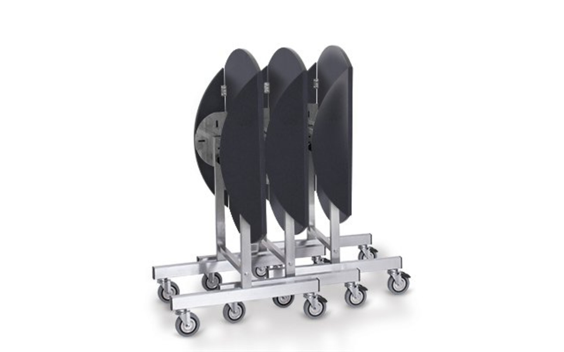De bovenkant vouwt verticaal om de tafels samen te kunnen nesten en ruimte te besparen