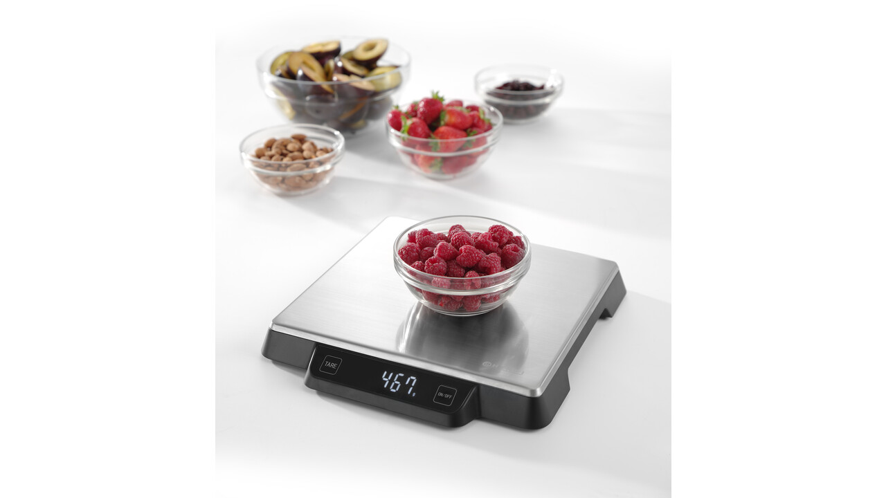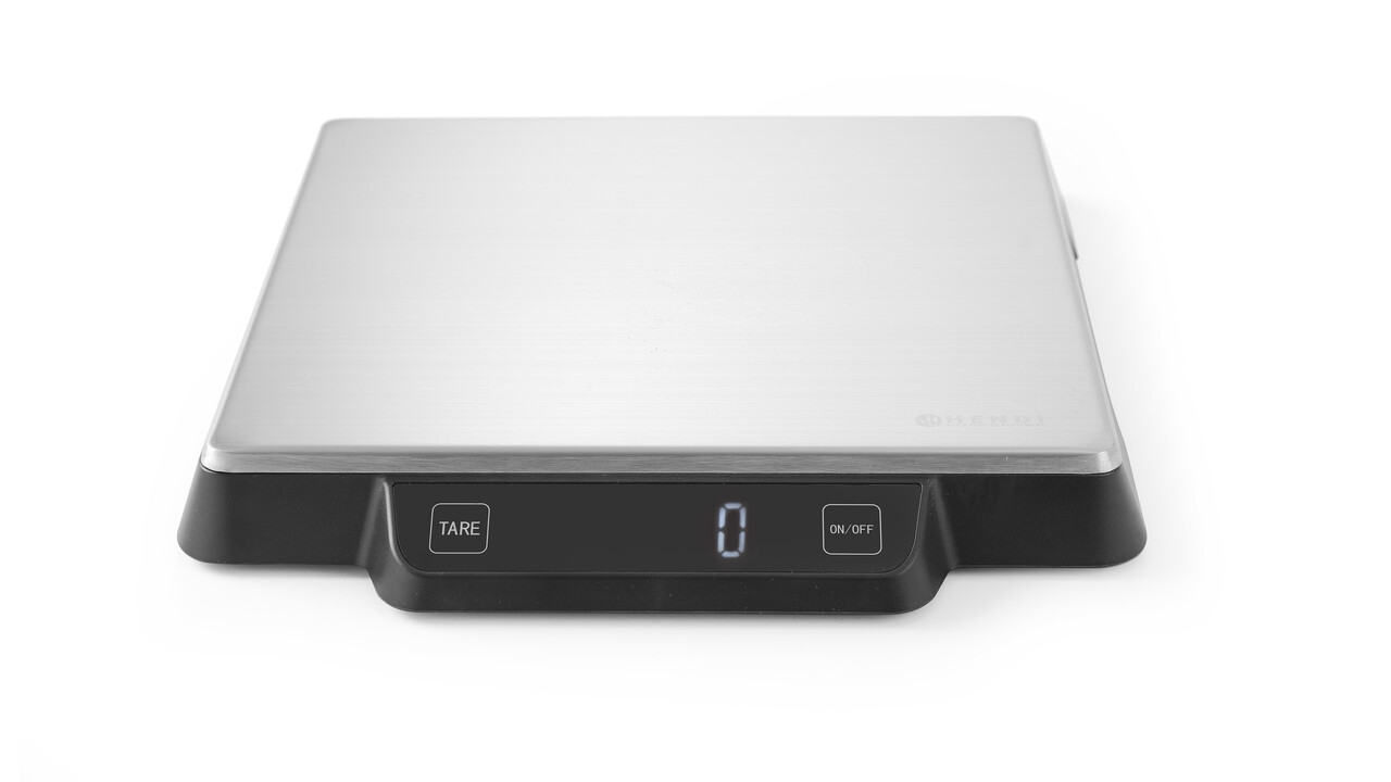 Aanraakgevoelige bediening met aan/uit en tarra knoppen.