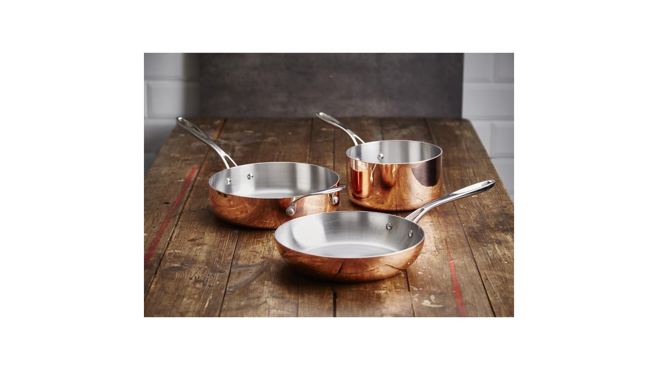 Deze koperen pan van Vogue bestaat uit 3 lagen, namelijk een laag aluminium tussen een laag RVS aan de binnenzijde en een laag koper aan de buitenzijde. Dit baanbrekende ontwerp zorgt voor superieure warmtegeleiding en warmtebehoud en zorgt dat warmte gelijkmatig verdeeld wordt en voedsel snel en gelijkmatig gaart. De pan is voorzien van een comfortabel, geklonken, koelblijvend handvat dat handen beschermt tegen brandwonden.