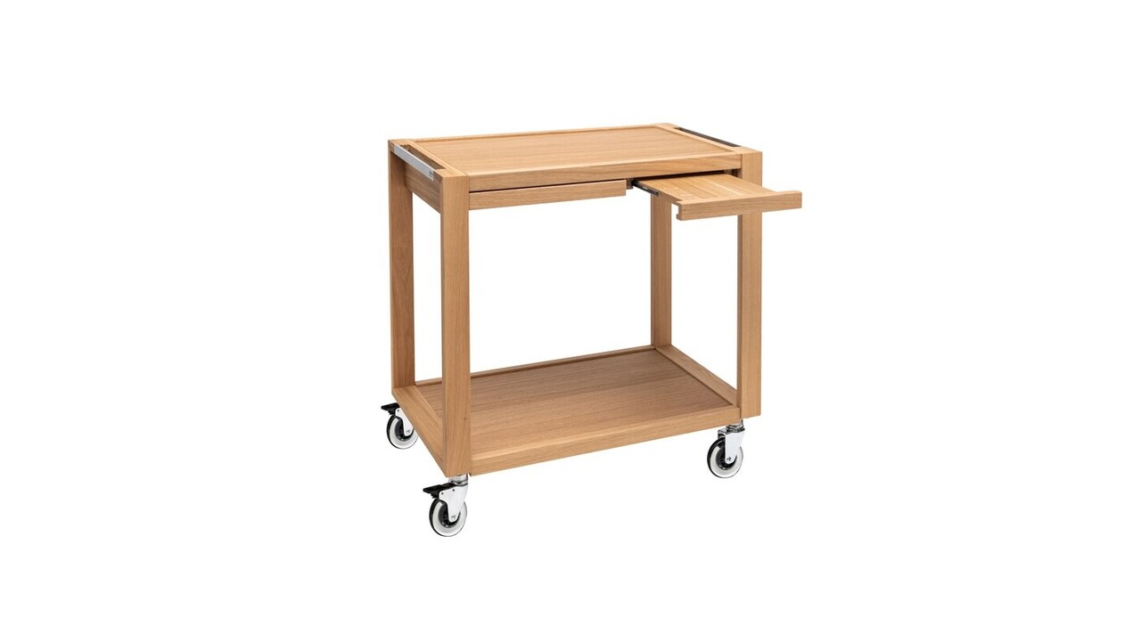 Uittrekbare, ingebouwde plaathouder van hout met hoogwaardige geleiders.