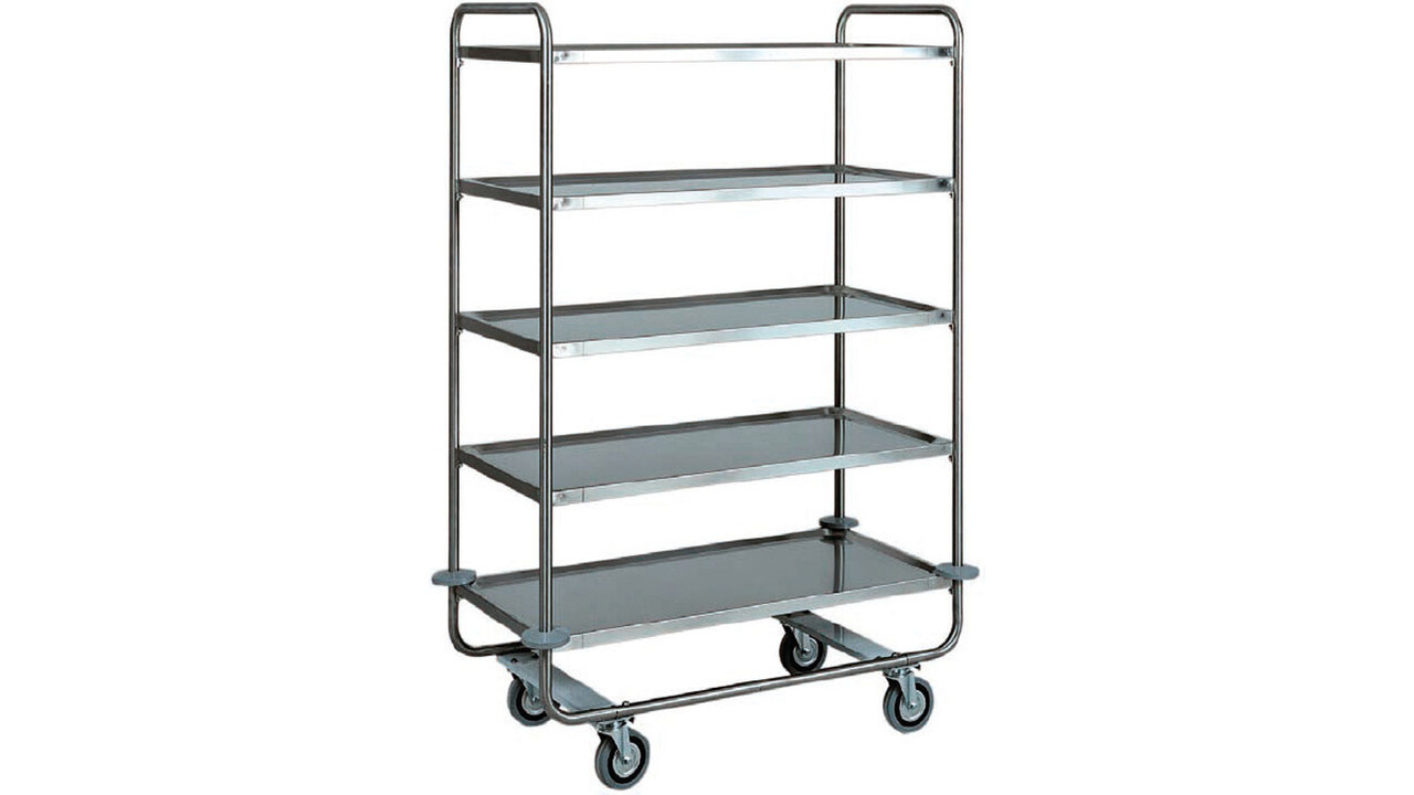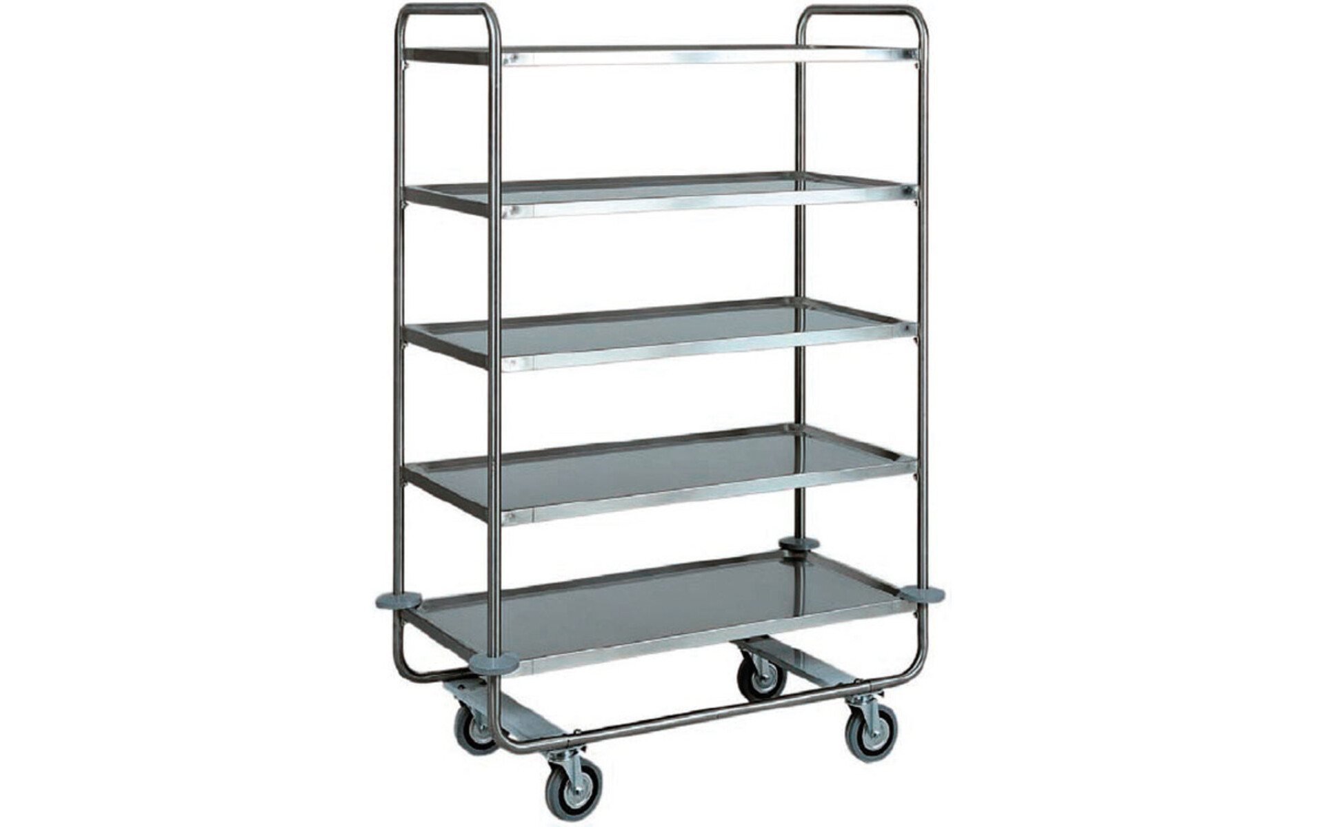 ø 25 mm in roestvrij staal AISI 304 - AISI 304 roestvrijstalen legborden, bakvormig met afgeronde randen en hoge dikte, geluiddempend en met satijnen afwerking – rubberen schokdempers – multidirectionele wielen ø 125 mm.