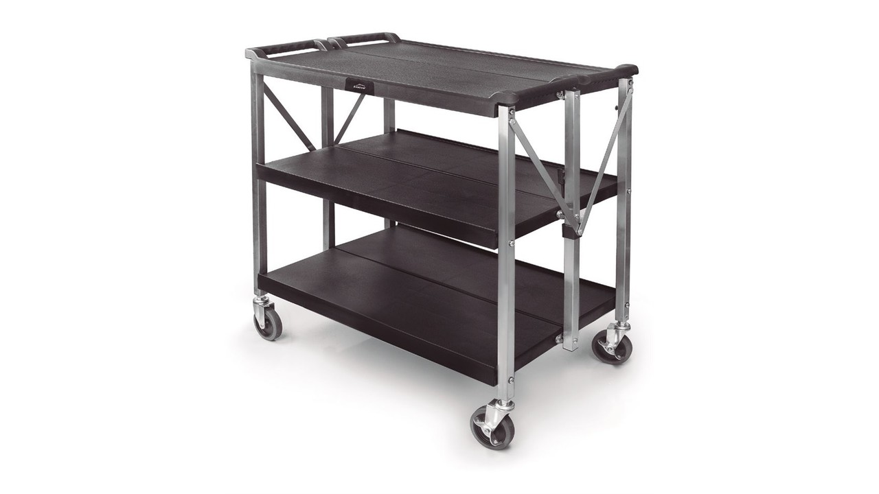 Afm. 93 x 51 x h 93,5 cm. Laadvermogen 30 kg per laadvlak. Gemaakt van roestvrij staal en polypropyleen. Opvouwbaar en vergrendelbaar. Ideaal voor kleinere ruimtes.