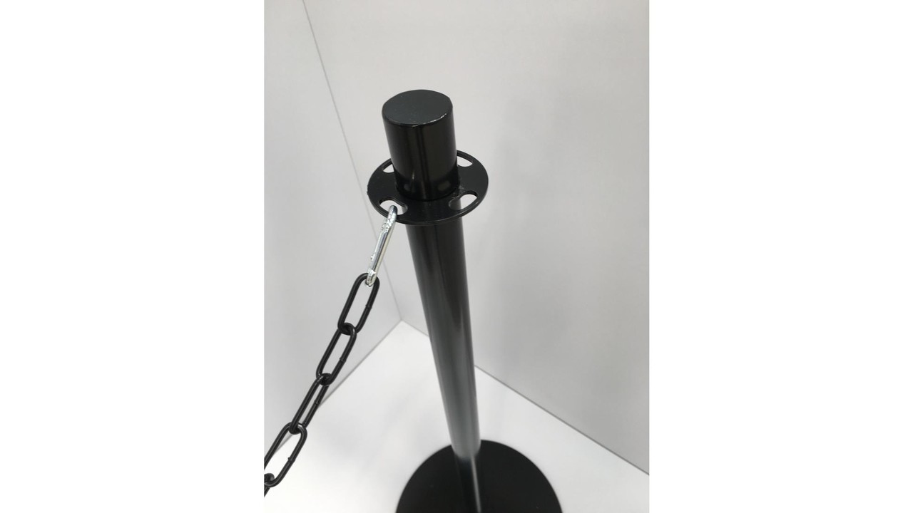 Handige set met 2 afzetpalen met vlakke bovenkant om te gebruiken in publieke ruimtes als winkels, hotels en restaurants. Inclusief een metalen ketting lengte : 1,5 meter