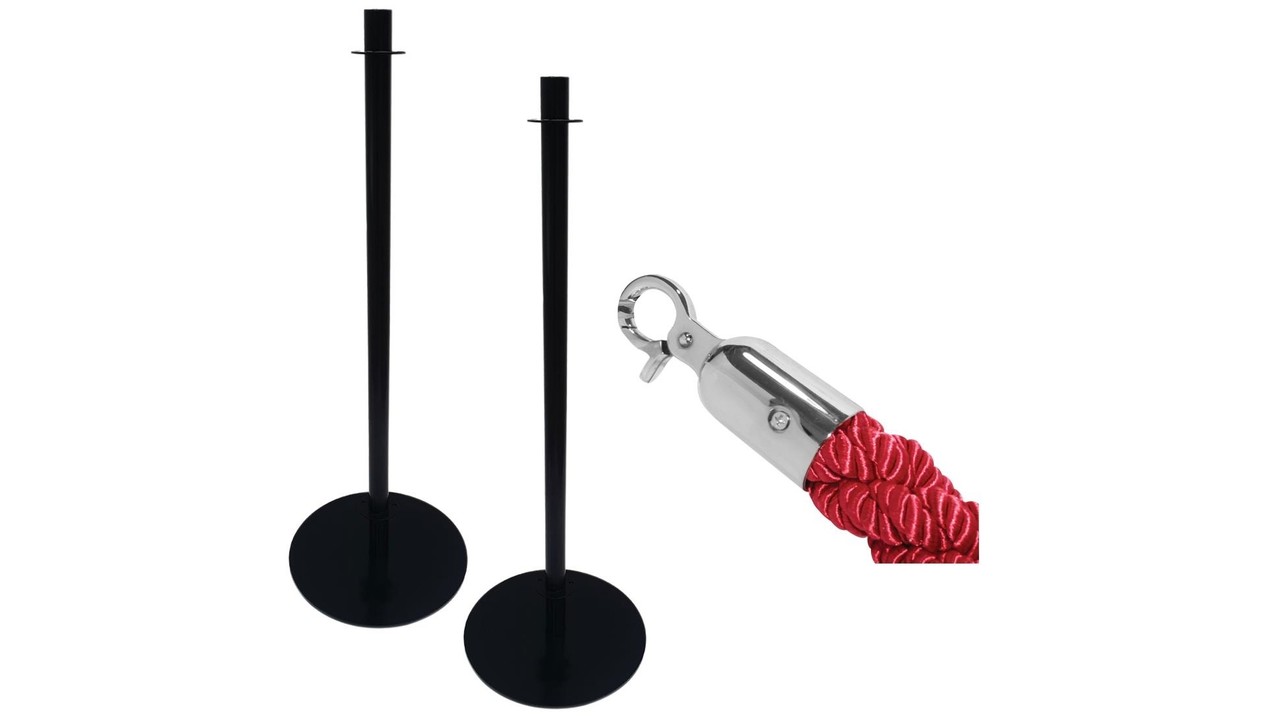 Set van 2 zwarte afzetpalen met één rode afzetkoord 1,5 m
