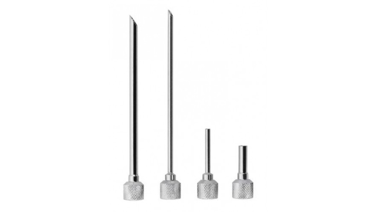 Deze 4 Isi-injectienaalden (diameters 3 mm en 5 mm - 2 kleine naalden + 2 grote naalden) zijn
