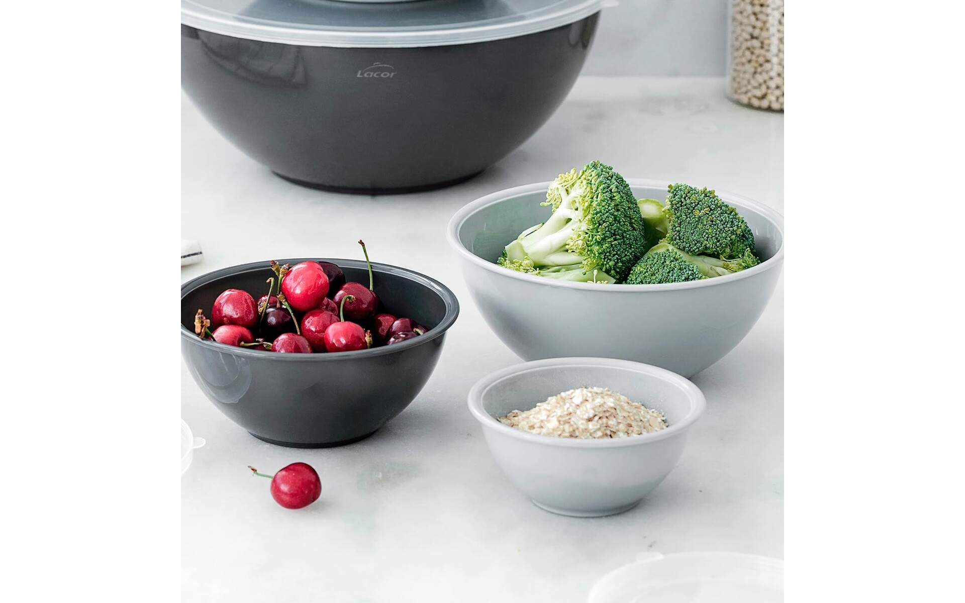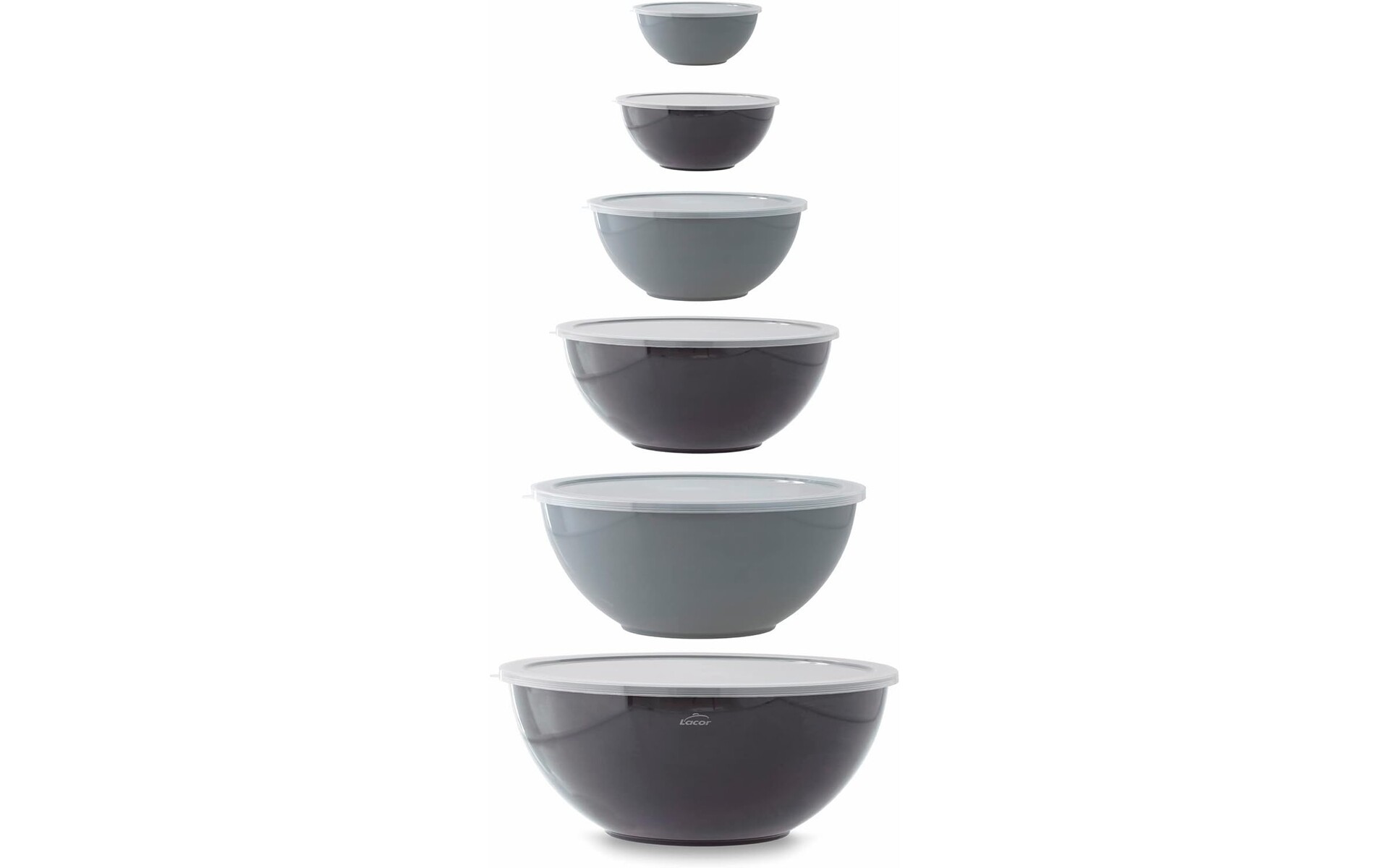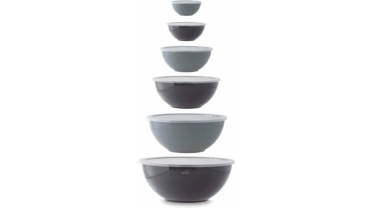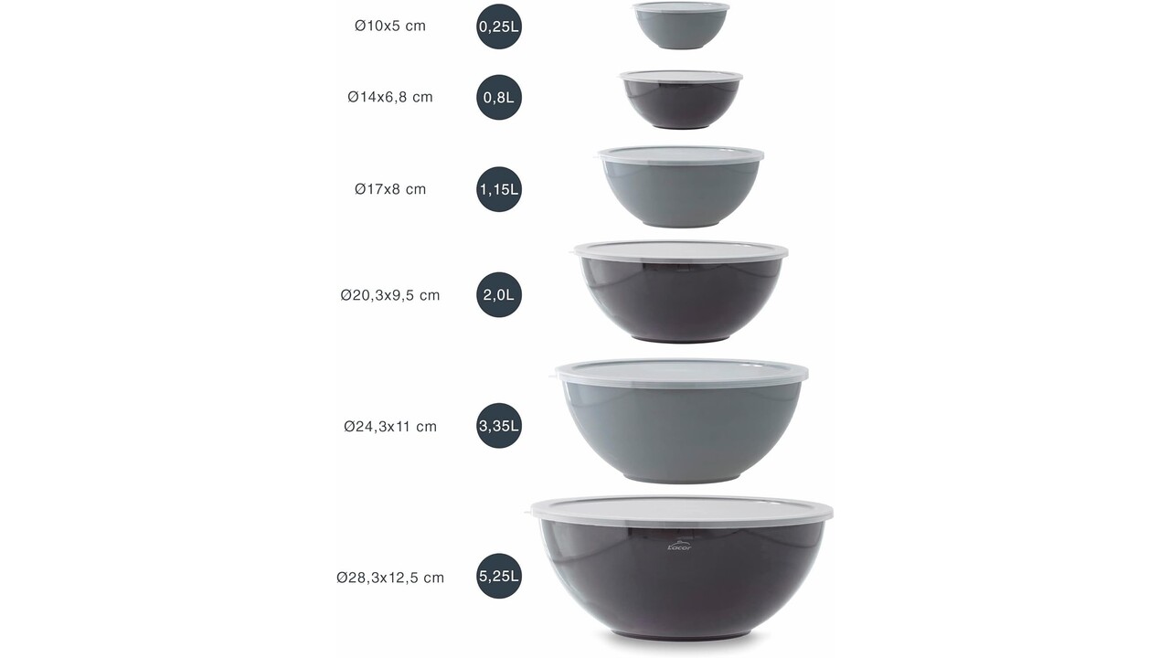 Bestaat uit 6 kommen die perfect op elkaar stapelbaar zijn. Inclusief 6 polypropyleen deksels, BPA-vrij