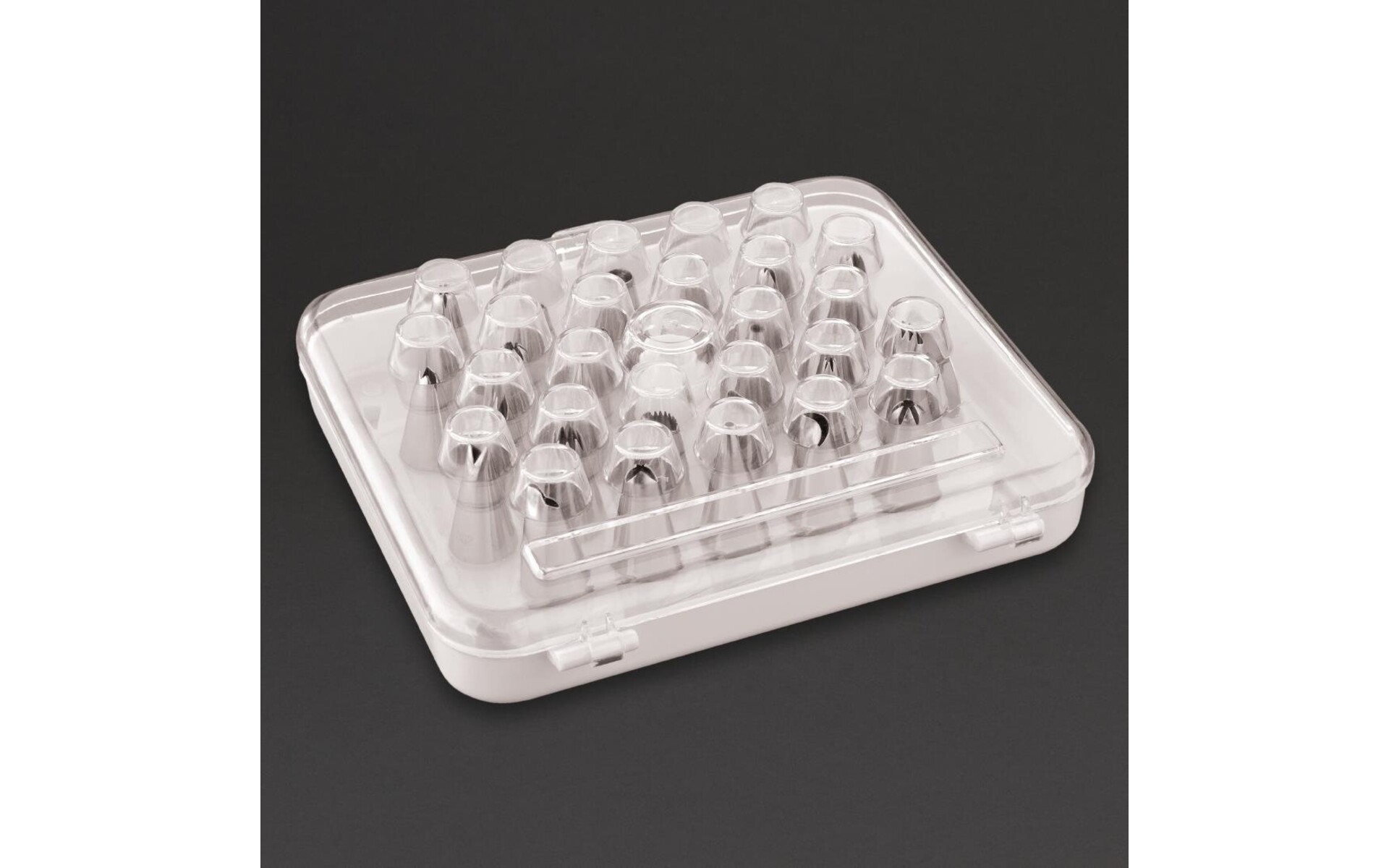 Deze 26-delige spuitmondenset is perfect voor professionele banketbakkers. Gemaakt van RVS, zodat ze lang meegaan, hygiënisch zijn en makkelijk schoon te maken. De spuitmonden hebben verschillende vormen, zodat u kunt kiezen uit diverse versierstijlen.