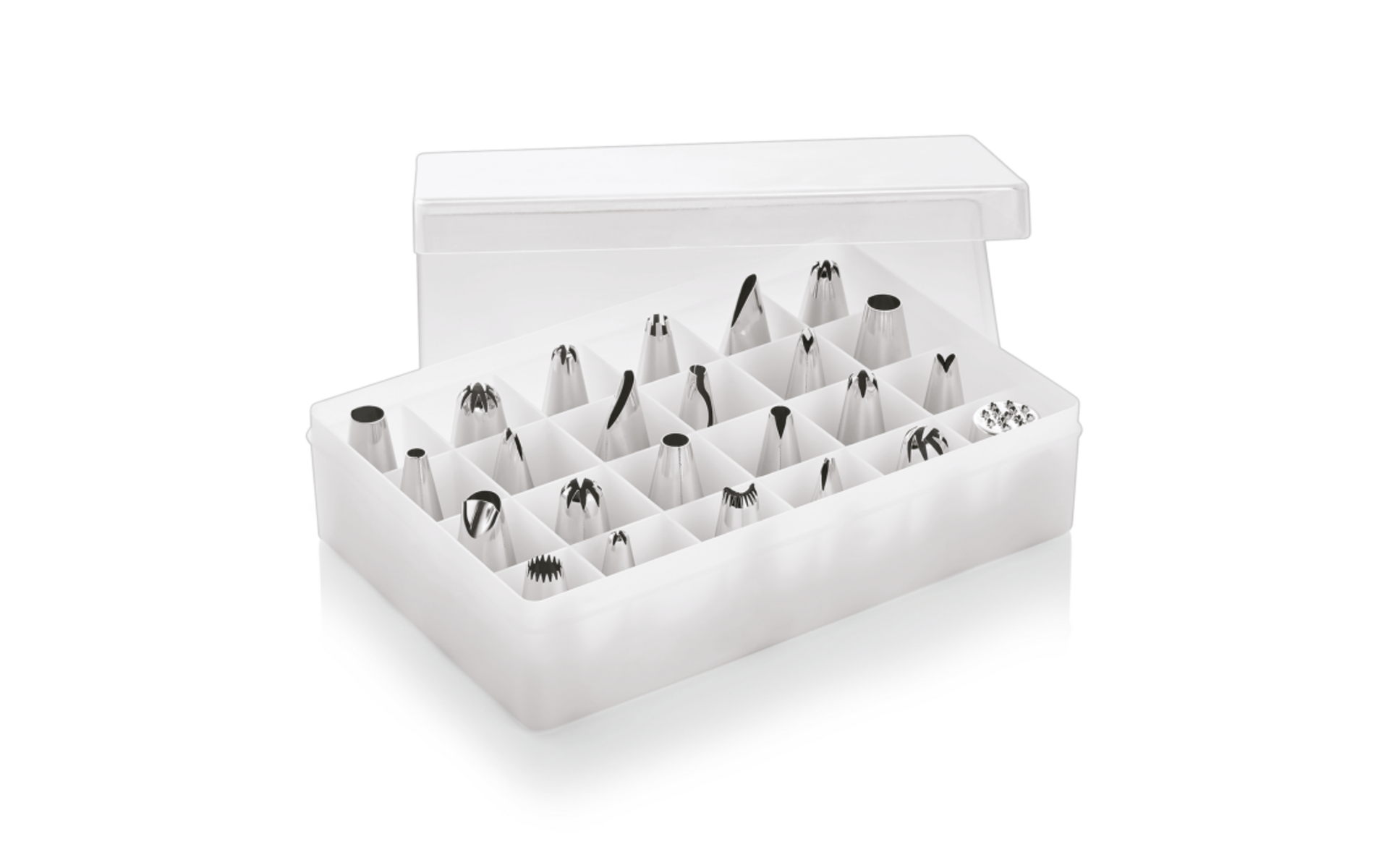 Verpakt in handige doos. Hoogte van elk spuitmondje : ongeveer 3 cm.
