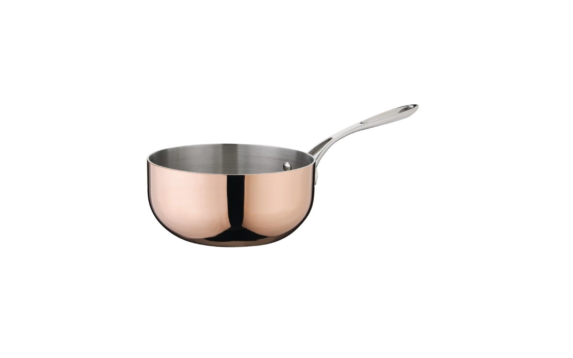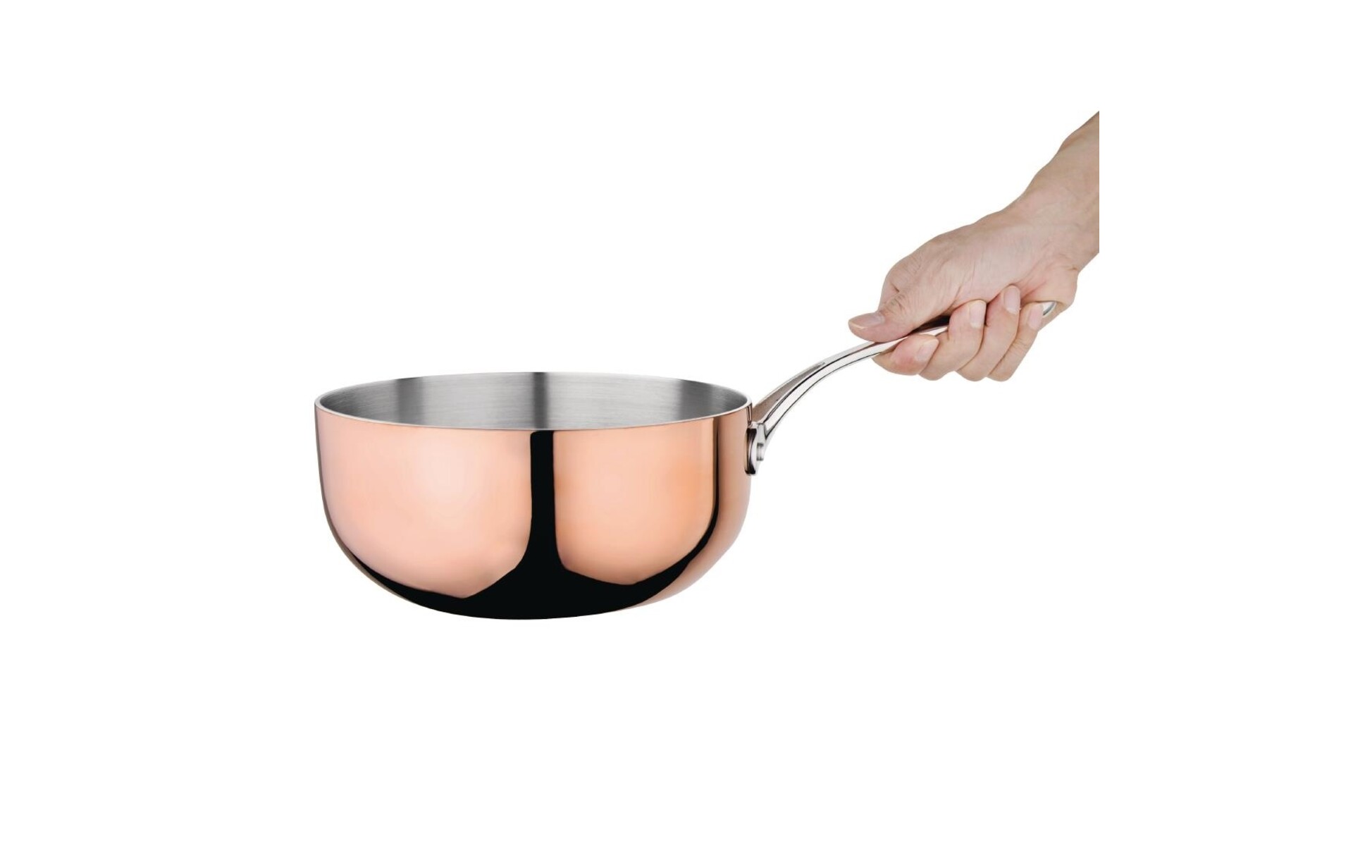 Deze koperen sauteuse van Vogue bestaat uit 3 lagen, namelijk een laag aluminium tussen een laag RVS aan de binnenzijde en een laag koper aan de buitenzijde. Dit baanbrekende ontwerp zorgt voor superieure warmtegeleiding en warmtebehoud en zorgt dat warmte gelijkmatig verdeeld wordt en voedsel snel en gelijkmatig gaart. De pan is voorzien van een comfortabel, geklonken, koelblijvend handvat dat handen beschermt tegen brandwonden.