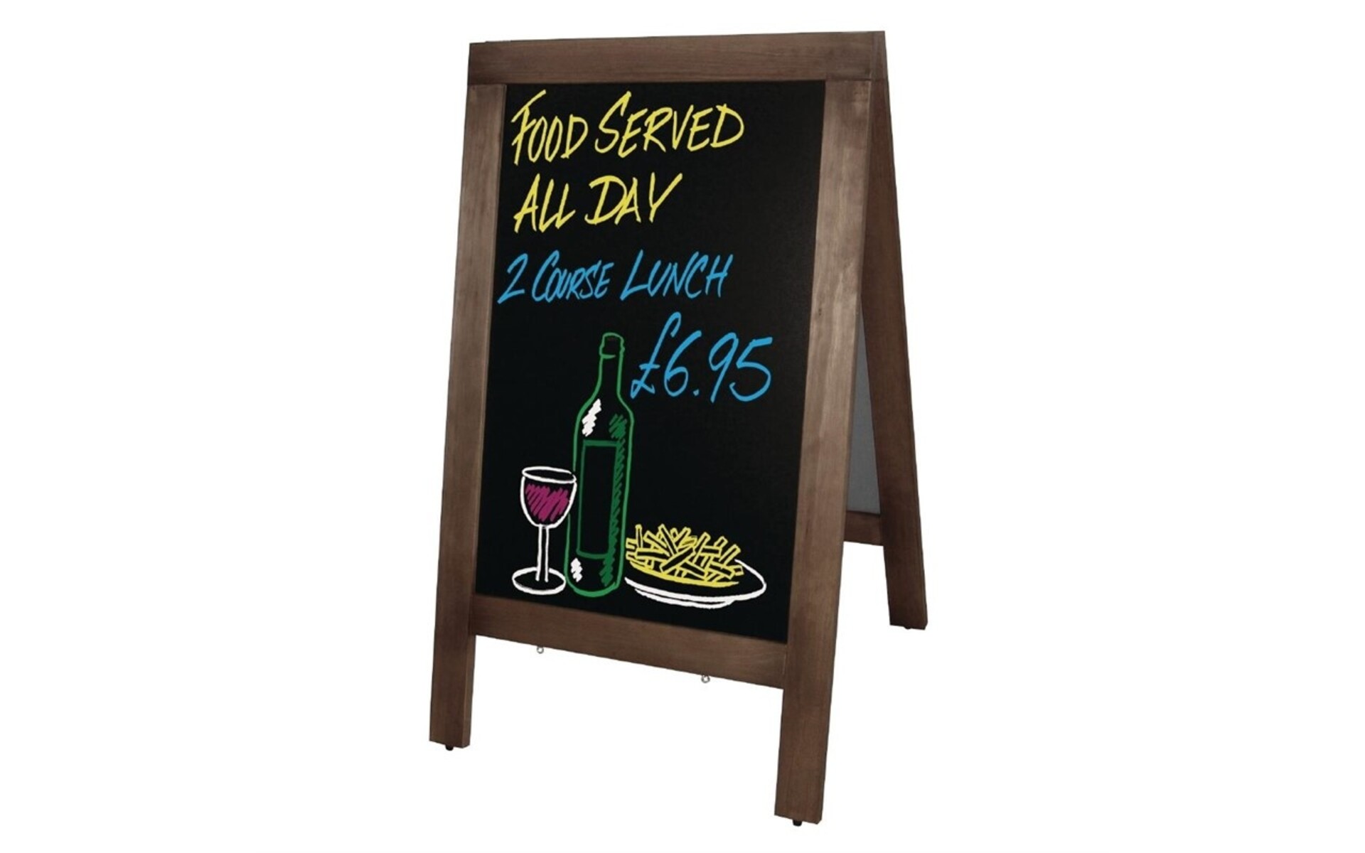 Stevige houten stoepborden voorzien van eenvoudig te reinigen melamine schrijfborden. Ideaal voor restaurants, cafe's en terrassen om de dagelijkse aanbiedingen aandacht te geven.