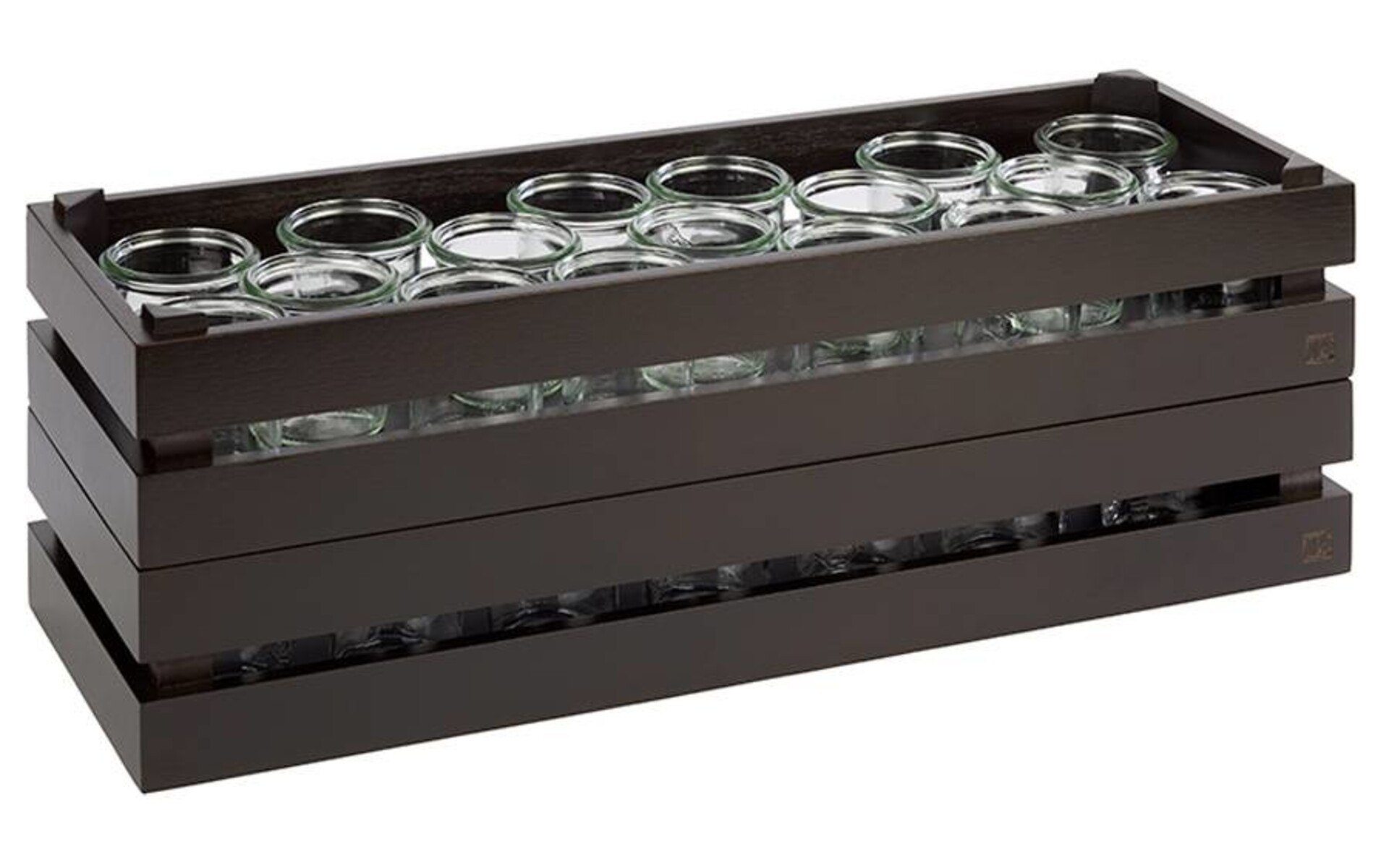 Stapelbaar serveerbakje GN 2/4 voor originele service of buffet gebruik Afm. 55,5 x 18,5 x h 10,5 cm Acacia hout