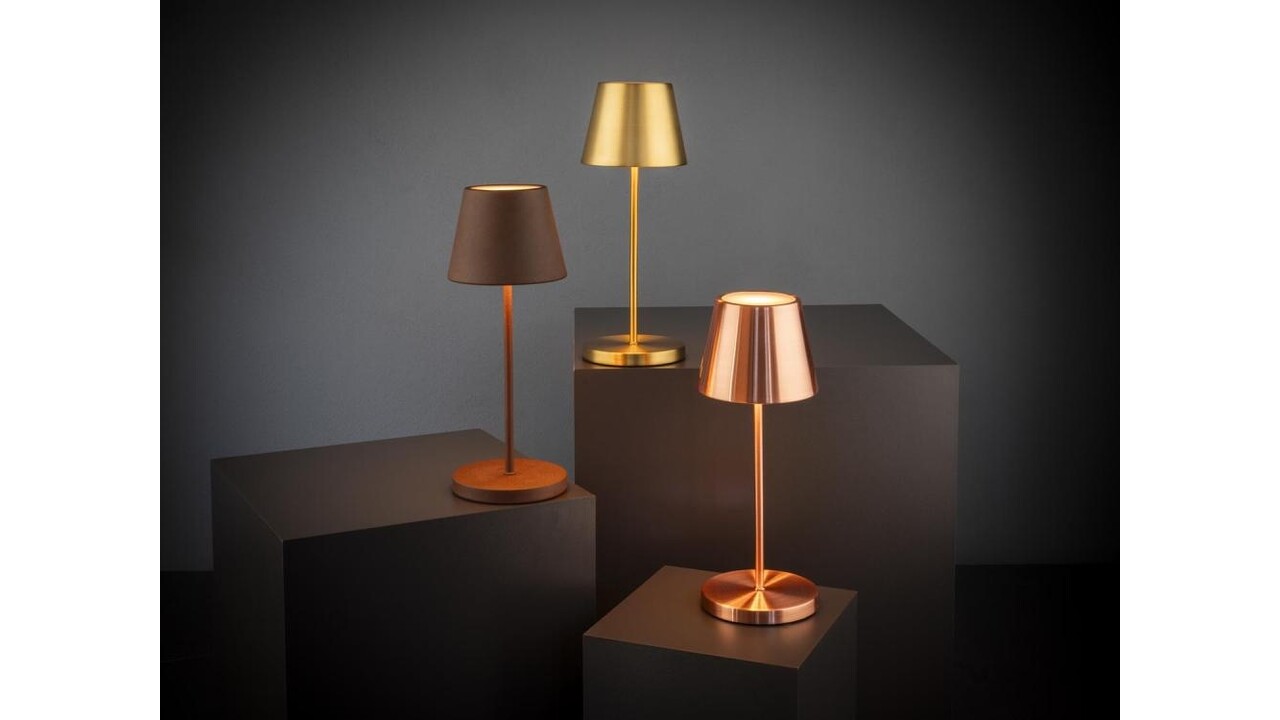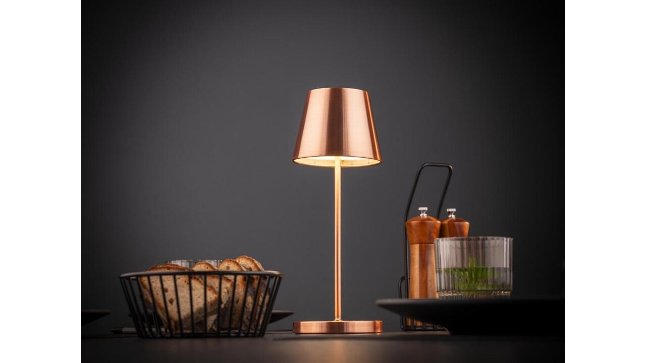 Kleur: koper , 1x LED 2,0 W / 180 lm, dimbaar in 3 standen, CCT: 2.200 / 2.700 / 3.500 K, 5.000 mAh Li-ion accu, spatwaterdicht IP54, oplaadtijd: 8u, verlichtingsduur: 10u (100% helderheid), max. verlichtingsduur: 54u (laagste helderheid), oplaadkabel USB A naar USB C.