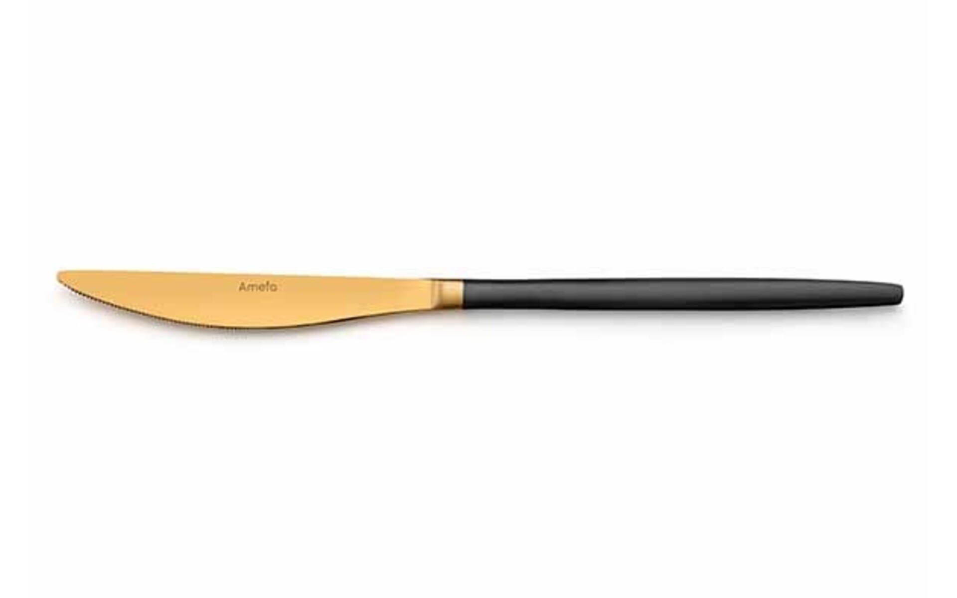 De afgeronde contouren zorgen voor pure elegantie. Duurzaam 18/0 roestvrijstaal. Zwaar gewicht, hoogwaardig én luxe gevoel. De zwarte PVD-afwerking van de handgreep zorgt voor een eigentijds look. Slanke, elegante en moderne handgreep biedt comfort tijdens gebruik.