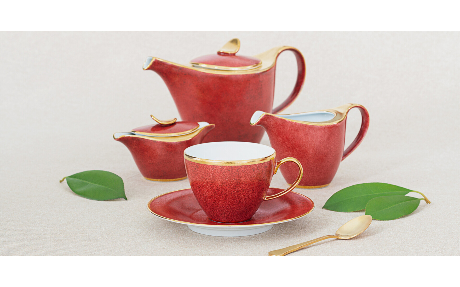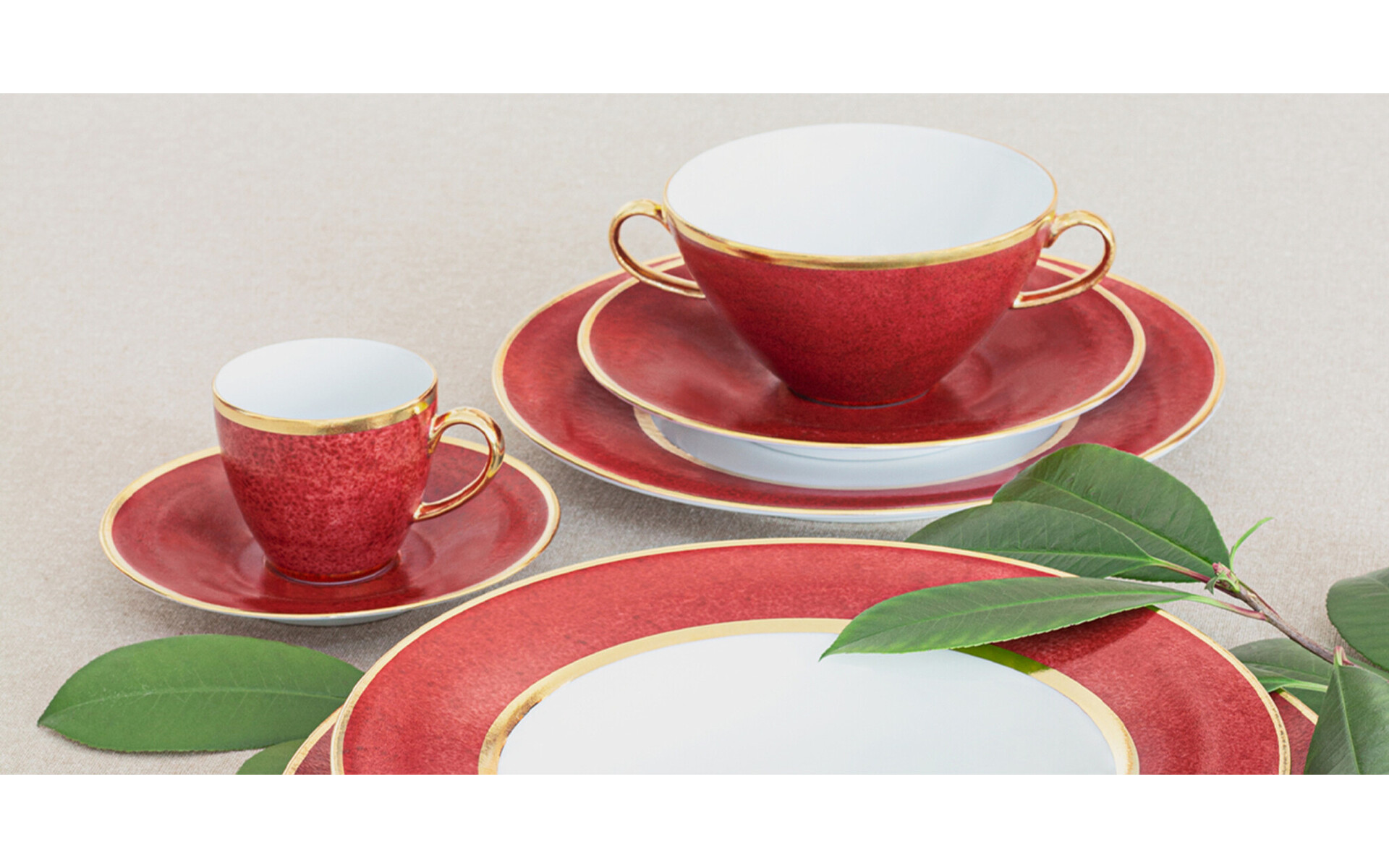 ONTWERP VAN STUDIO PORCEL // ROUGE IS EEN COLLECTIE GEÏNSPIREERD DOOR LUXUEUZE MATERIALEN EN HANDWERK, MET EEN UITZONDERLIJKE DECORATIE, VERGULD MET GOUD. DOOR GEBRUIK TE MAKEN VAN REACTIEVE INKT KRIJGT DE DECORATIE VAN ROUGE EEN VURIGE ROOD, MET VERLEIDELIJKE TEXTUREN DIE IN ELK STUK UNIEK ZIJN.