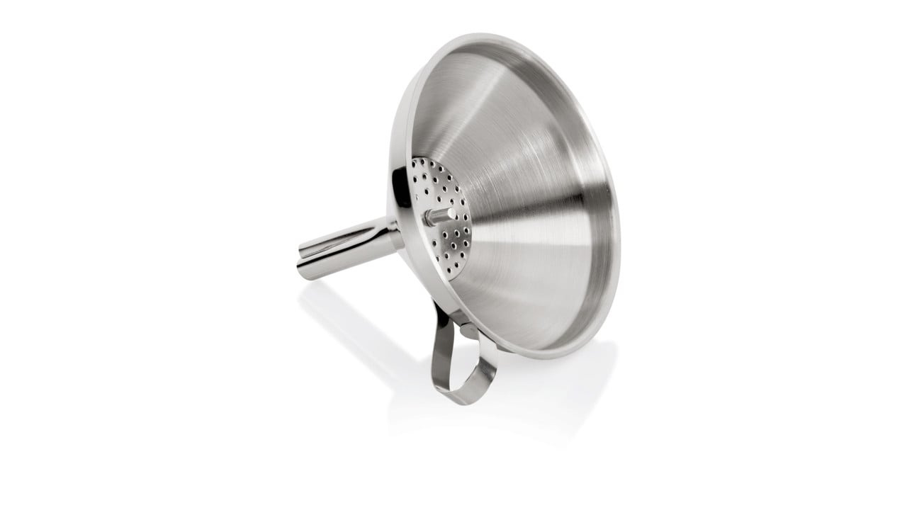 Gemaakt van chroomnikkelstaal 18/10. Met zijhandgreep en verwijderbare zeef. Diameter bovenaan : 15 cm. Tuit : diameter: 1,6 cm. Totale hoogte: 13 cm. Prijs per 2 stuks.