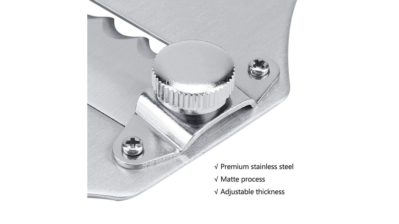 Gemaakt van roestvrij staal. Blad AISI 420 . Met een gekarteld mes. Palissander handvat. Afmetingen: 22,5 x 8,5 cm . Vaatwasser bestendig. Met instelbare snijdikte tussen 0,2 - 3,0 mm.