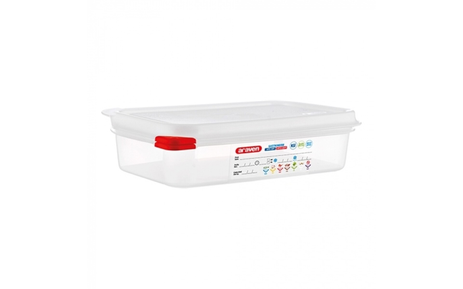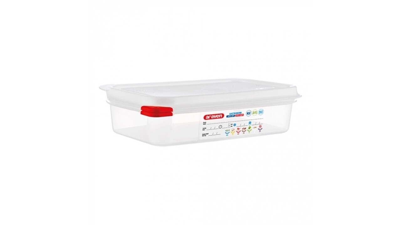 Araven kleurcode GN voedseldozen Tot en met GN 2/3 luchtdicht afsluitbaar door uniek dubbel sluitsysteem Geschikt voor gebruik tussen de -40 en + 90 graden Wordt compleet geleverd met COLORCLIP coderingsset volgens de HACCP normen