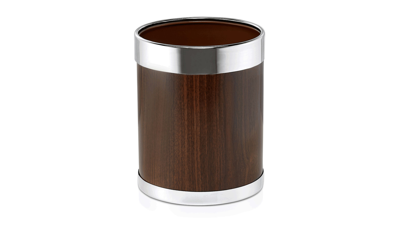 Vuilbakje rond Ø 22 cm, bruin, gepoedercoat staal met houten look