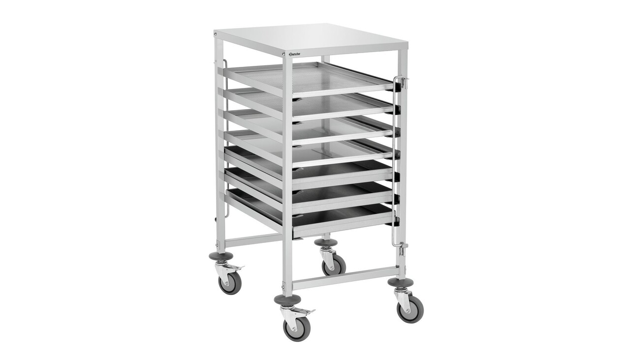 Wagen voor het transport van 7 euronorm schotels 60 x 40 cm