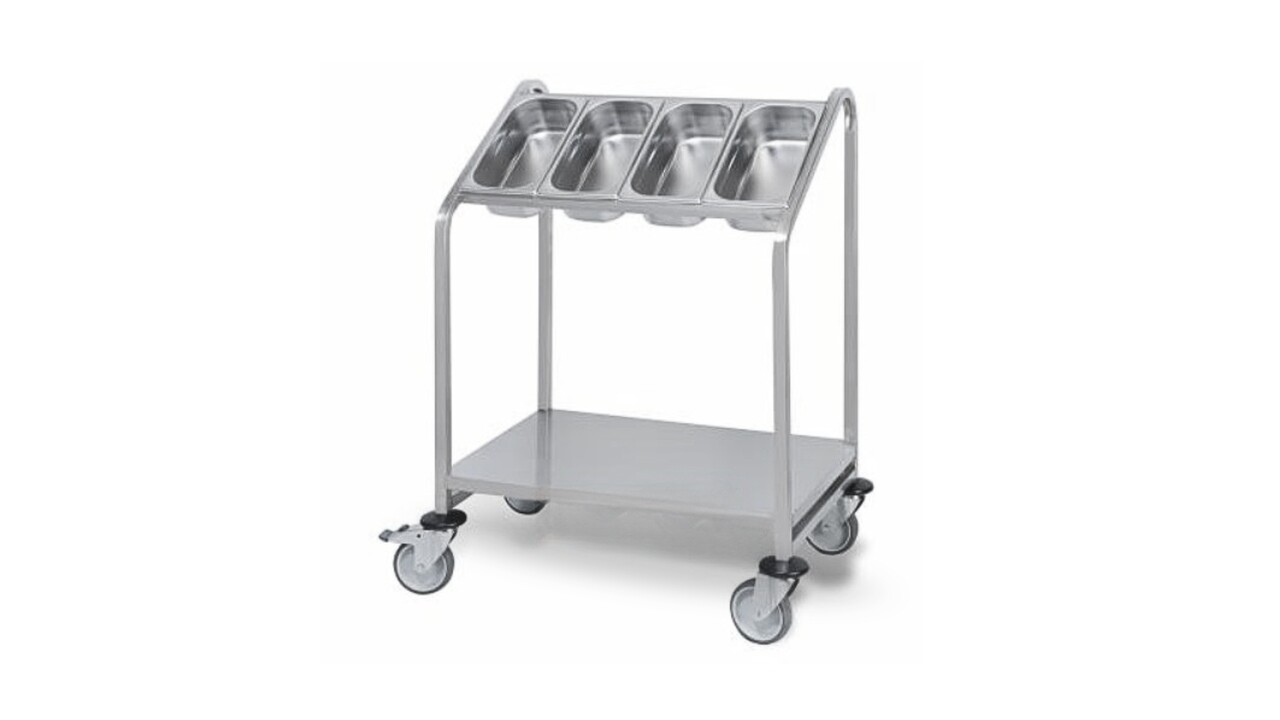 Inclusief 4 stuks GN 1/3 bestek bak rvs diep 20 cm / 7,5 liter. Afmetingen : 810 x 570 x 1065 mm