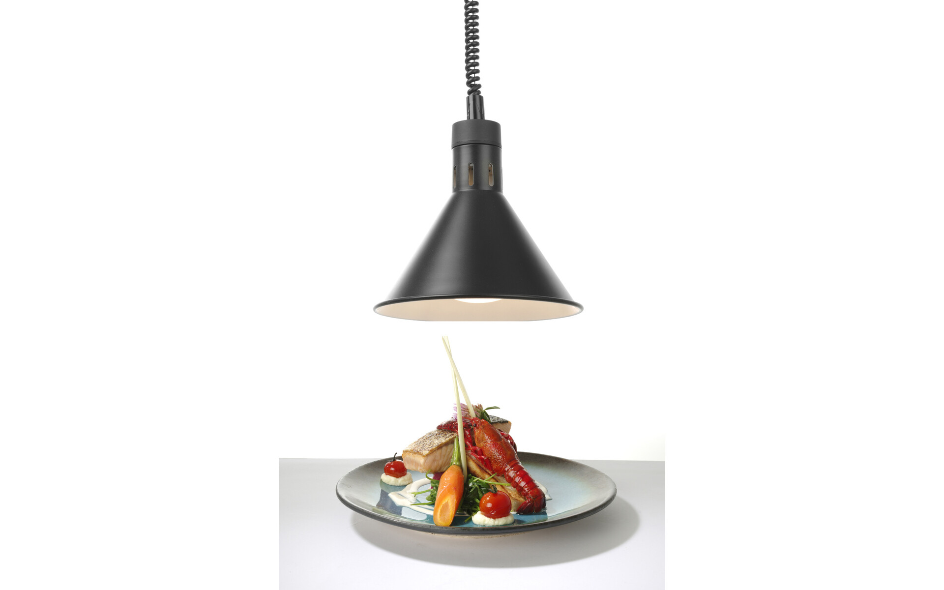 Dankzij het verstelbare snoer is deze warmtelamp zeer flexibel, de lengte van het snoer is variabel tussen 70 en 150 cm. De afgegeven hitte is te regelen door de lengte van het snoer te veranderen. Aan de bovenkant van de kap is een aan/uit knop geplaatst