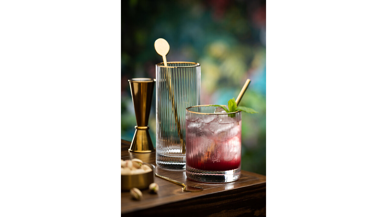 Het populaire Hayworth assortiment is glamoureus, de verticale optiek versterkt deze collectie en geeft de stukken een verbluffende uitstraling. Klaar voor een close-up in elke bar. Perfect voor een verscheidenheid aan cocktails, mixdrankjes en whisky.