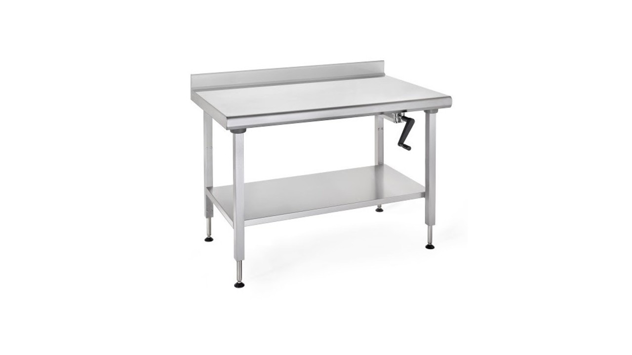 Na het verstellen van de hoogte kan de slinger onder het werkblad worden geklapt, waardoor het risico op blijven haken of schokken wordt vermeden.