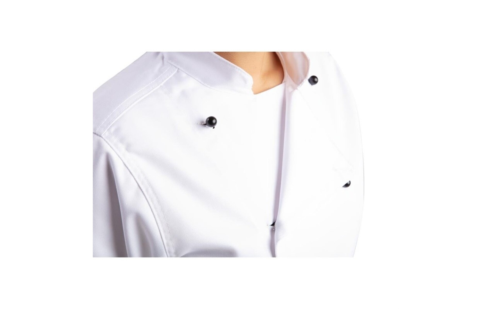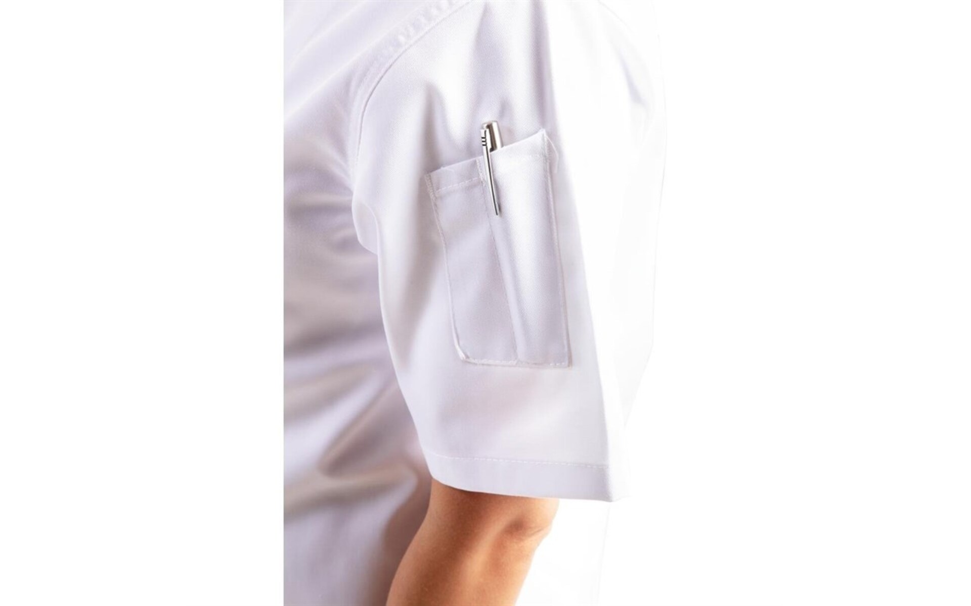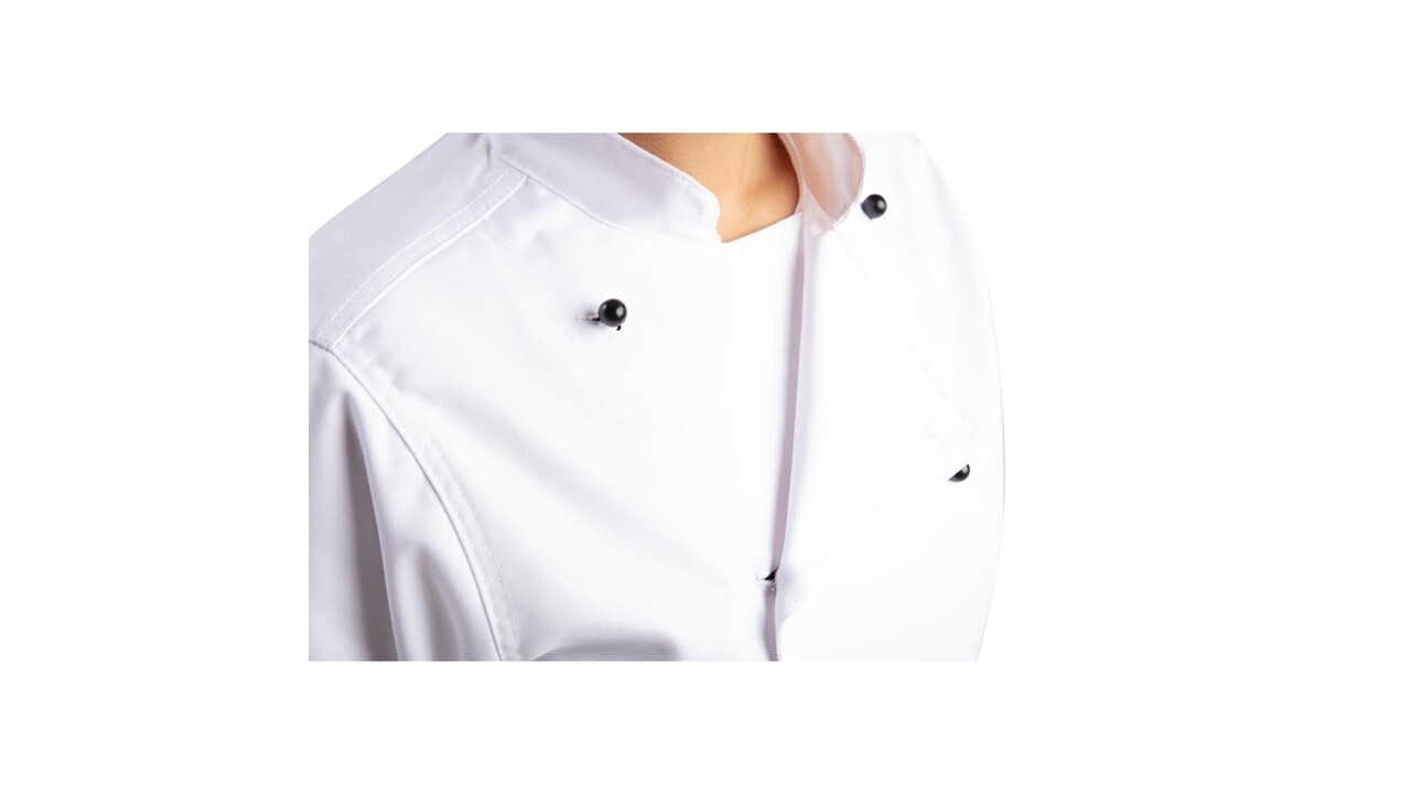 De Chicago koksbuis van Whites heeft een traditioneel design voor comfort en functionaliteit in een drukke keuken. Met korte mouw waardoor u koel blijft en verwijderbare bolknopen voor eenvoudig wassen. Verkrijgbaar in de maten XS, S, M, L, XL en XXL.