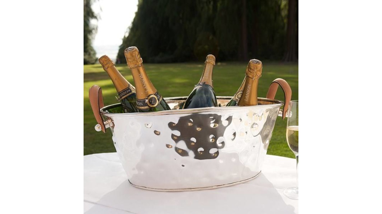 De ovale XXL champagne koeler is een ware eye-catcher afm. 50 cm x h 22cm is geschikt voor het koelen van 12 flessen wijn 0,75 liter