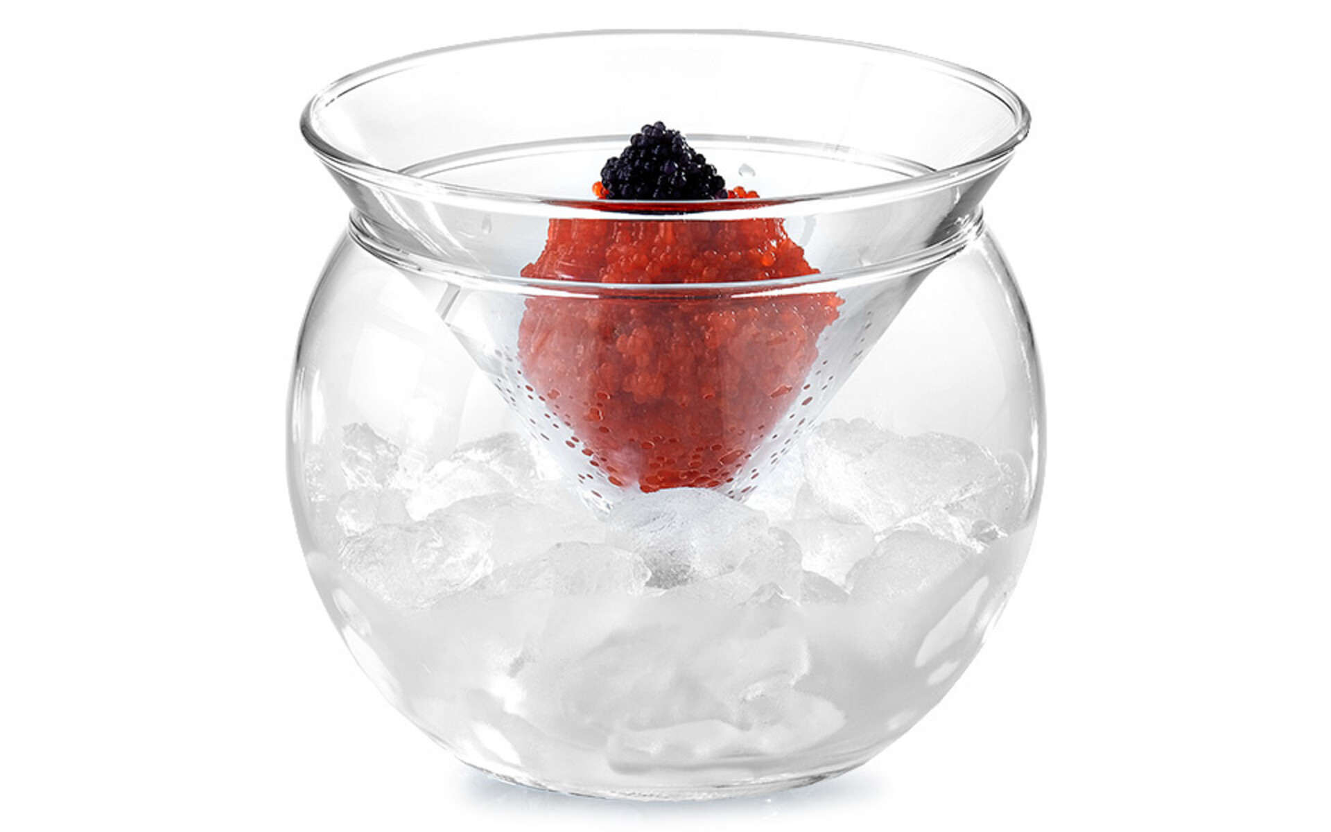 Inhoud van de glazen inzet 17 cl. Ideaal voor het serveren van gekoelde zeevruchten cocktails, Martini cocktails, kaviaar en véél meer.....