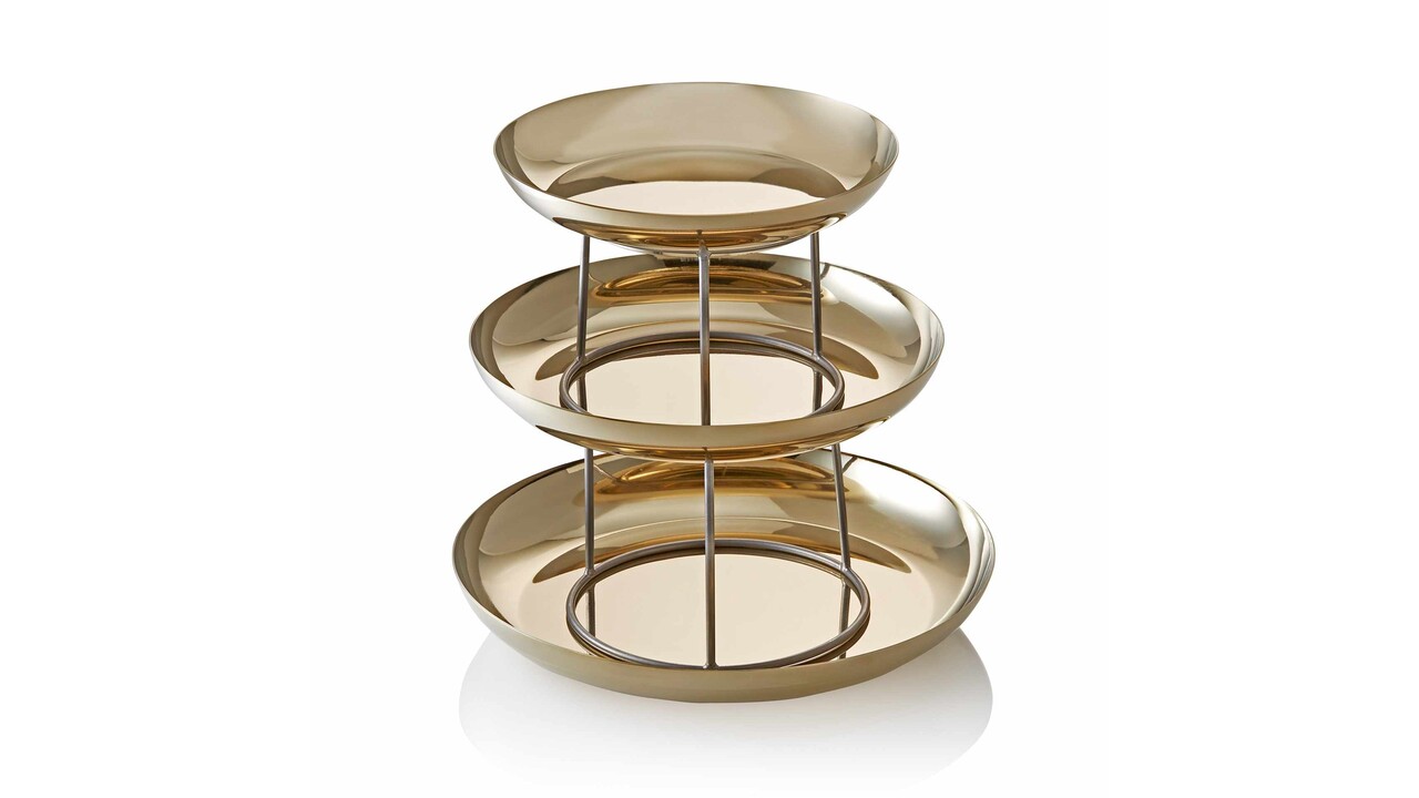 Tower-serie met gouden roestvrijstalen PVD coating is een stijlvolle en functionele blikvanger voor buffetten. Gemaakt van chroomnikkelstaal, biedt hij een verfijnde presentatieoptie voor zeevruchten , snacks, desserts of kleine gerechten.