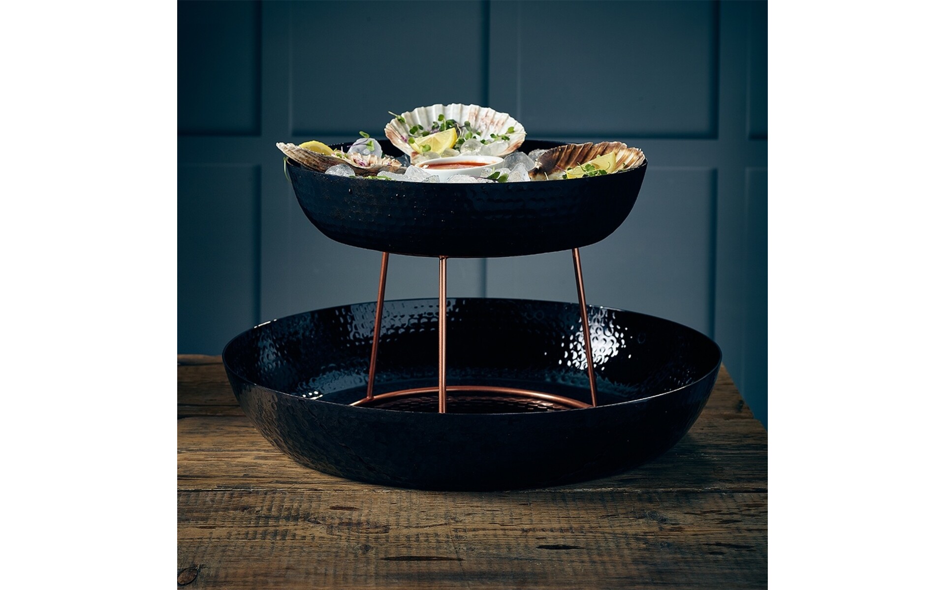 Zeevruchtenschotel set met 2 schotels gehamerd zwarte uitvoering