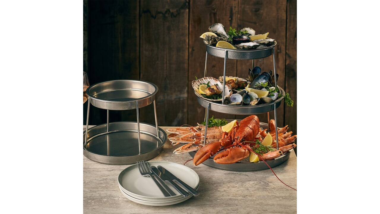 Til uw eetervaring naar een hoger niveau met de M & T tweelaagse zeevruchten dienbladen, vakkundig vervaardigd uit roestvrij staal met een vintage afwerking. Ontworpen om niet alleen uw beste seafood te presenteren, maar ook een scala aan gerechten om te delen, zal dit veelzijdige middelpunt op elke tafel opvallen, van chique restaurants tot meer informele etablissementen.